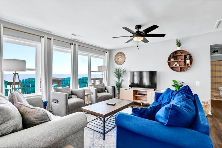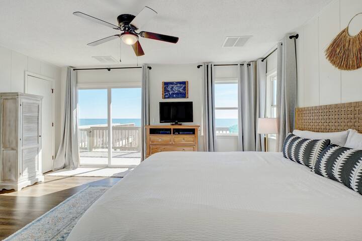 Step onto the oceanfront deck, breathe in the salt air and take in the view. You feel as if you're sitting right on the beach! Catch glimpses of dolphins swimming in your backyard. Spend the day at the beach with all the conveniences of home just steps away. Plus, LINENS included and BEDS are MADE.