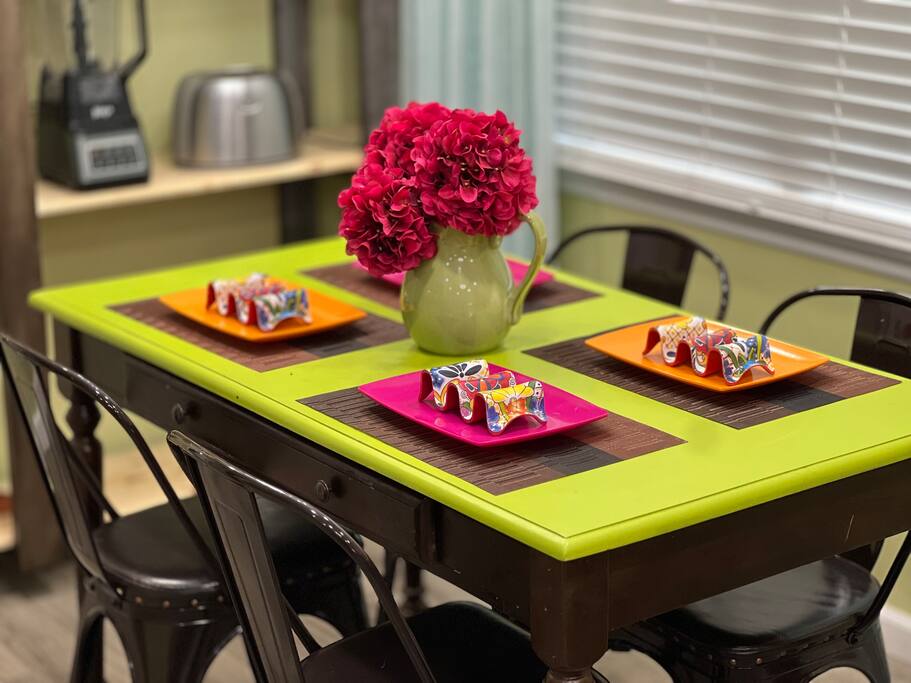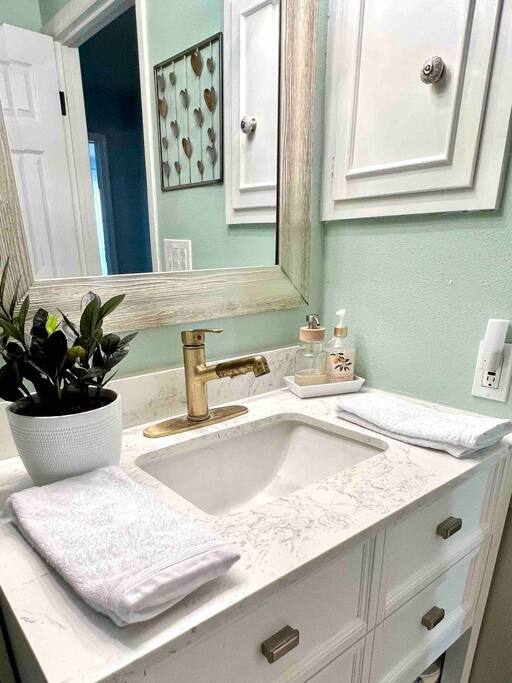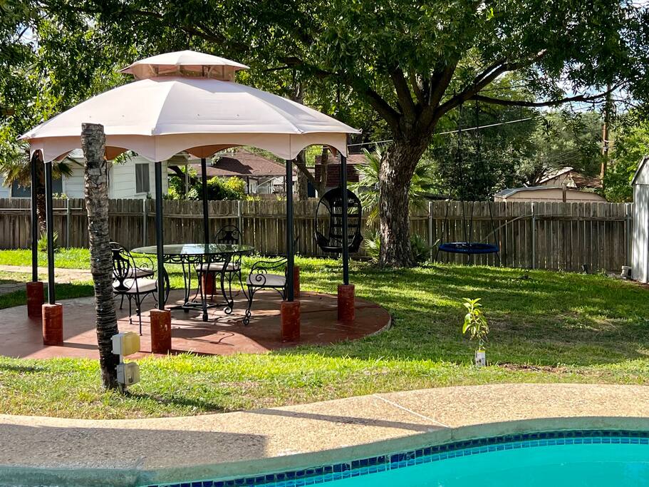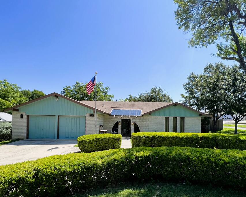 Fun San Antonio-inspired decor including pictures of local attractions. Single story with no steps to the entry. The backyard will be your favorite place to be with plenty of sun, shade, and fun! Cook on the grill or prepare a meal in the fully-stocked kitchen and then toast marshmallows on the firepit.