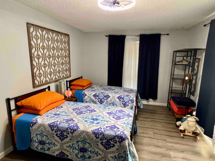 * Bedroom 3 - Two twin beds, Ceiling Fan, Two Clothing Racks, Moon Night Light and Sound Machine