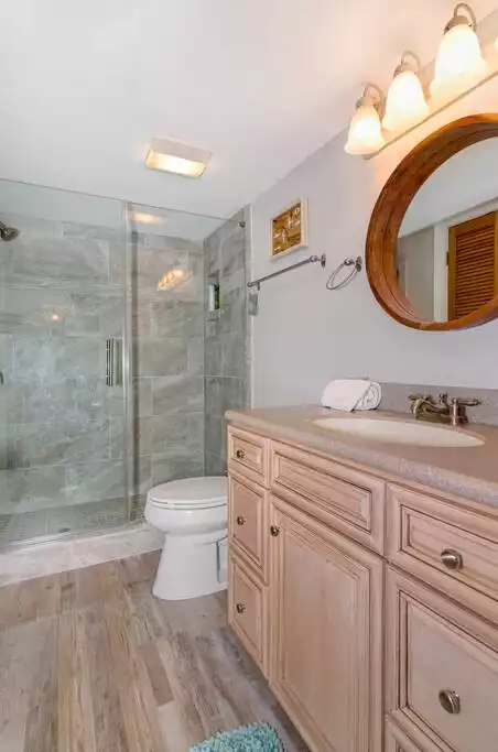 A spacious 1481 square foot 3 bedroom 2 bathroom villa end unit at the Island Club offers great panoramic views of the lagoon and glimpse of the ocean. This villa features 2 bedrooms and one bathroom with a washer/dryer closet downstairs. The first bedroom has a queen size bed and second bedroom has a queen size bed and TV. Upstairs you will find the master loft with a king size bed, master bath with steamed shower and jetted tub, walk-in closet, and additional room with a sleeper sofa.