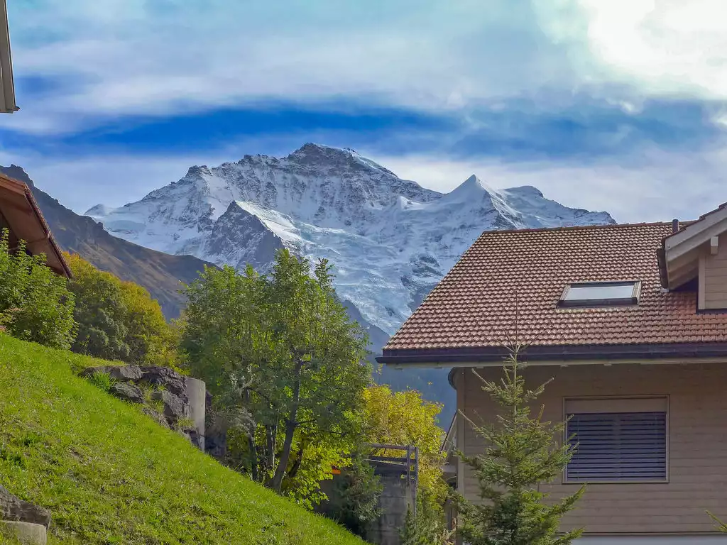 Apartment block "Panorama", built in 2003. Below Wengen, 800 m from the centre, in a quiet, sunny position on a slope. In the house: central heating system. Pre-arrival grocery service. Motor access to 30 m from the house. Stepped path (20 steps) to the house. Shop, supermarket 800 m, restaurant 500 m, bar 800 m, 15 minute walk to the centre, bus stop "Lauterbrunnen (by train)" 3.8 km, railway station "Wengen" 800 m, outdoor swimming pool 1.3 km. Cable car, skisport facilities 800 m, children's playground 500 m. Well-known lakes can easily be reached: Thunersee 13 km, Brienzersee 13 km. Please note: car-free holiday complex. Arrival via mountain railway. Additional accommodations can be booked. Arrival is only possible by train from Lauterbrunnen – 14 minutes driving time."Panorama Apt. P", 4-room apartment 100 m2 on 1st floor. Bright, modern and tasteful furnishings: living/dining room with Scandinavian wood stove, dining table, satellite TV and radio. Exit to the balcony. 2 rooms, each room with 1 double bed (2 x 90 cm, length 200 cm). 1 room with 2 beds (90 cm, length 200 cm). Open kitchen (oven, dishwasher, 4 induction hot plates, toaster, kettle, microwave, electric coffee machine, Capsules for coffee machine (Nespresso) extra, fondue Set (cheese)). Shower/WC, bath/shower/WC. Large balcony. Balcony furniture. Very beautiful view of the mountains and the valley. Facilities: iron, hair dryer, logs (extra). Internet (WiFi, free). Please note: non-smokers only.