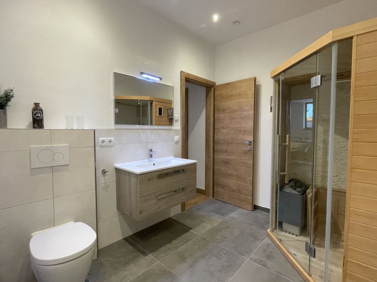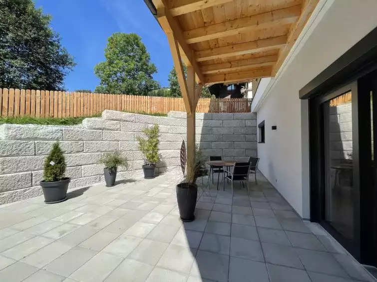 Niederau: Modern, cosy, comfortable chalet "Wildenbach", 2 storeys, semi-detached, built in 2017. 2 apartments in the property. 500 m from the centre of Niederau, 5 km from the centre of Oberau, 8 km from the centre of Auffach, in a quiet, sunny position. In the complex: storage room for bicycles, storage room for skis, ski boot dryer. Parking on the premises. Carport. Shop, grocery 800 m, supermarket 900 m, restaurant 600 m, bakery 800 m, bus stop 300 m, outdoor swimming pool 2.3 km. Mountain railway, gondola lift 800 m, ski rental 600 m, ski bus stop 300 m, ski school, children's ski school, sled run 800 m, cross country ski track 3 km, ice rink 4 km, children's playground 500 m. Nearby attractions: Familienfreizeitpark Drachental 4 km, Alpine Coaster im Drachental 4 km, Holzmuseum Auffach 7.5 km, Bergbauernmuseum 2.5 km. Well-known ski regions can easily be reached: SkiJuwel Talstation Markbachjoch 800 m, SkiJuwel Talstation Schatzbergbahn 8 km, Skiwelt Wilder Kaiser - Brixental 16 km. Well-known lakes can easily be reached: Schwarzsee bei Kitzbühel, Achensee. Hiking paths: Markbachjoch, Schatzberg, Gratlspitz, Wilder Kaiser - Brixental, Kitzbüheler Alpen. Please note: ski bus (free of charge). Free ski bus service to the ski region / Pendelverkehr zwischen Markbachjoch and Schatzbergbahn / Skigebiet SkiJuwel. The Chalet Wildenbach (consisting of AT6311.688.1 (apartment on the upper floor) and AT6311.688.2 (apartment on the ground floor)) can be booked as a whole (under AT6311.688.3) or separately (each apartment individually)."Panoramablick", 3-room apartment 80 m2, on the ground floor. Fully renovated in 2022, very beautiful and tasteful furnishings: entrance hall. Living/dining room with panoramic window with dining table and satellite TV (flat screen). Exit to the terrace. 1 double bedroom 14 m2 with 1 double bed (180 cm, length 200 cm). 1 double bedroom 12 m2, without window with 1 double bed (180 cm, length 200 cm), satellite TV (flat screen). Open kitchen (oven, dishwasher, 4 ceramic glass hob hotplates, toaster, kettle, microwave, electric coffee machine). Shower/WC, sep. WC. Underfloor heating. Large terrace 18 m2. Terrace furniture, electric barbecue (portable), deck chairs (2). Very beautiful view of the mountains, the ski run and the resort. Facilities: sauna (extra). Internet (WiFi, free). Please note: non-smokers only. Smoke alarm, fire extinguisher. The smaller bedroom has an efficient supply/exhaust air system and daylight (large double-leaf glass door to the living/dining area).