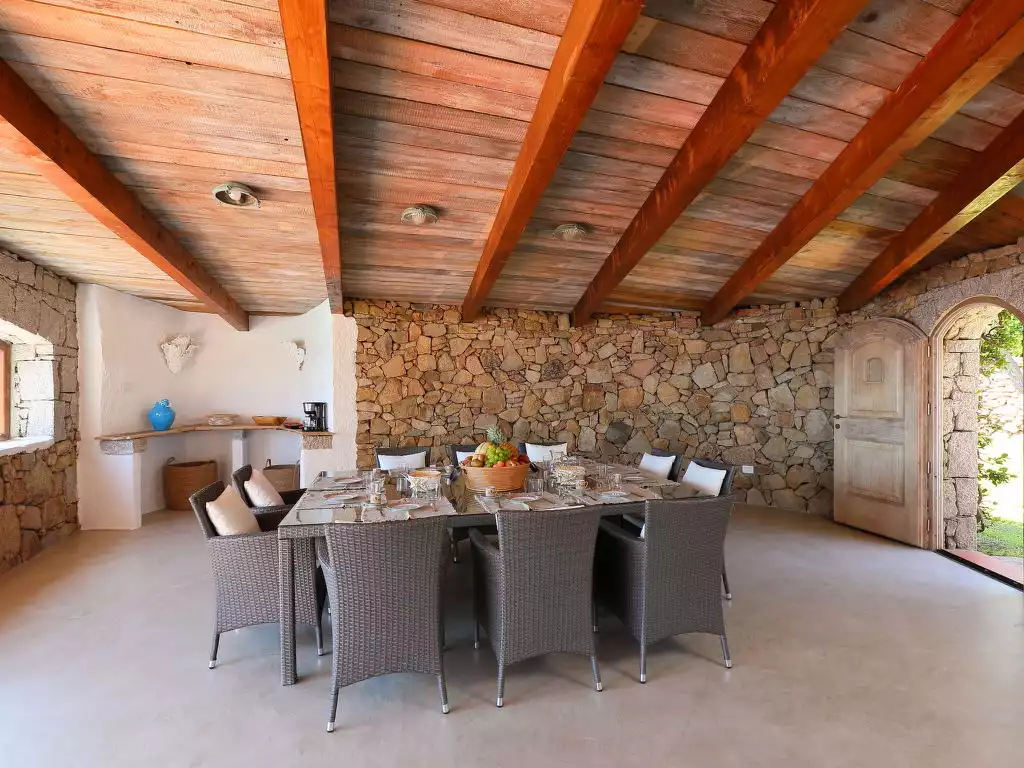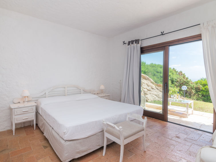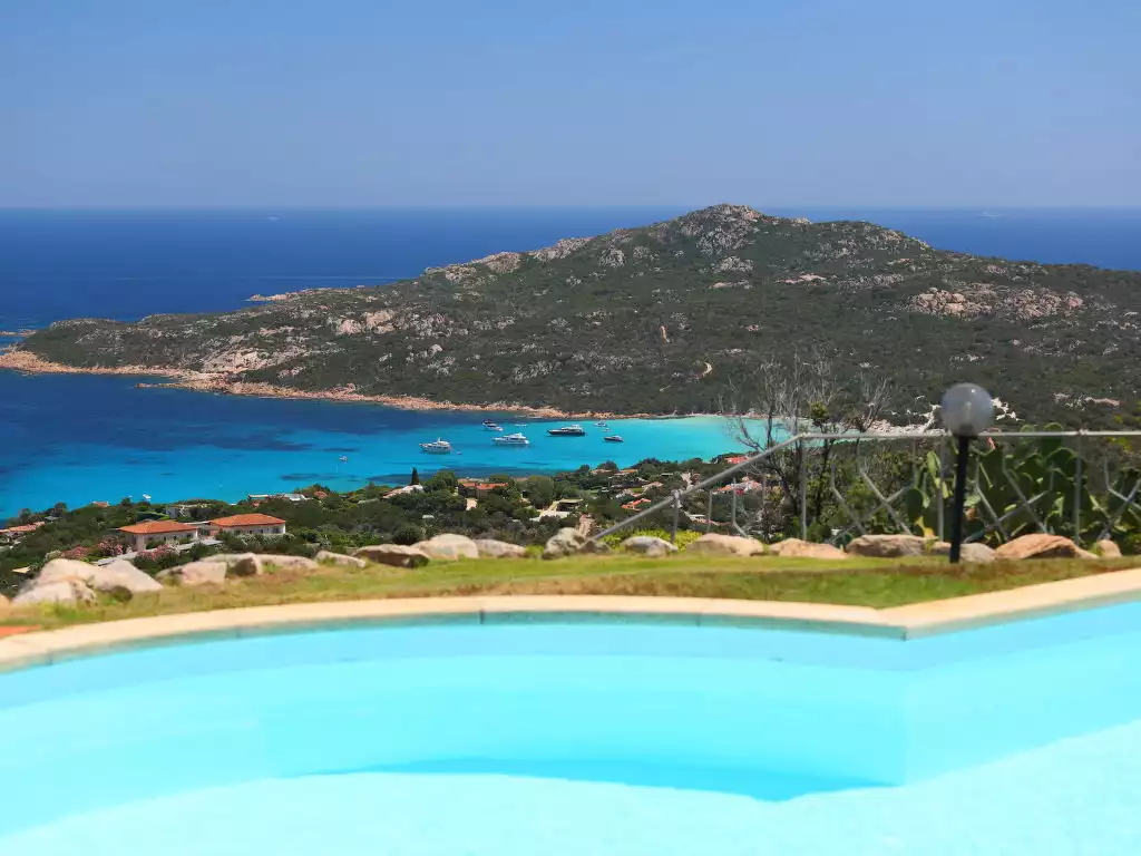 Pantogia: Luxurious villa "Paradiso", 2 storeys. 2 km from the centre of Porto Cervo, in a quiet, sunny, elevated position on a slope, residential area (villas), 2 km from the sea. Private: property 2'000 m2, garden 1'500 m2, swimming pool (9 x 13 m, depth 160 - 180 cm, seasonal availability: 07.May. - 30.Sep.). Outdoor shower, patio (15 m2), garden furniture, barbecue. Motor access to the house. Parking on the premises, public parking on the road. Supermarket 2 km, restaurant 1 km, bar 1 km, bus stop 1.5 km, sandy beach 2 km. Sports harbour 3 km. Nearby attractions: Olbia 30 km, Golfo Aranci 30 km, Palau 30 km, S Teresa di Gallura 50 km. Please note: car recommended.6-room villa 250 m2 on 2 levels. Modern and tasteful furnishings: living room with veranda, panoramic window with satellite TV (flat screen), air conditioning and forced-air heating. Exit to the garden, to the veranda, to the swimming pool. 2 double bedrooms, each room with shower/bidet/WC, air conditioning and forced-air heating. Exit to the veranda. 1 room with 1 bed and shower/WC. Kitchen (4 hot plates, oven, dishwasher, freezer). On the lower ground floor: 2 double bedrooms, each room with shower/bidet/WC, air conditioning and forced-air heating. Air-conditioning, forced-air heating (extra). Large terrace. Terrace furniture, barbecue, deck chairs. Very beautiful panoramic view of the sea. Facilities: washing machine. Internet (WiFi, free). Parking (fenced). Please note: non-smoking house. In the central part there are 5 steps to access the rooms. Dependance: 2 semidetached bedrooms, each room with double bed and shower / wc / bidet. IT090006B4000S8409
