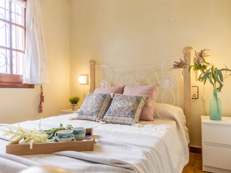 Riumar 10 km from Deltebre: Cosy, rustic, comfortable house "Paraiso", 2 storeys. In a quiet, sunny position, 600 m from the sea, 600 m from the beach. Private: property (fenced), natural garden, swimming pool angular (7 x 4 m, depth 160 cm, seasonal availability: 01.Jan. - 31.Dec.) with internal staircase. Patio, pergola, garden furniture, barbecue. In the house: WiFi, air conditioning, washing machine. Parking at the house. Supermarket 500 m, restaurant, bar 300 m, bakery 600 m, bus stop "Riumar" 650 m, railway station "Aldea- Amposta" 25 km, sandy beach "Riumar" 600 m. Sports harbour 1 km. Nearby attractions: Port Aventura 75 km, Tortosa 35 km, Playa el Trabucador 29 km, Barcelona 190 km. Hiking paths: Parque natural Puerto Tortosa Beseit 52 km, GR 92 15 km. Please note: car recommended. Suitable for families. Groups of teenagers on request only."Paraiso", 4-room house 120 m2 on 2 levels. Spacious, rustic and cosy furnishings: living/dining room with open-hearth fireplace (only for decoration), dining table, digital TV, international TV channels, air conditioning and forced-air heating. Exit to the patio, to the swimming pool. 1 double bedroom with 1 bed (150 cm, length 190 cm). 1 double bedroom with 2 beds (90 cm, length 190 cm). Kitchen (4 hot plates, oven, toaster, kettle, microwave, freezer, electric coffee machine). Hip bath/WC. Air-conditioning, forced-air heating. Heating not available in all rooms. Upper floor: 1 double bedroom with 1 bed (150 cm, length 190 cm), hip bath/WC. Exit to the balcony. Garden. Terrace furniture, barbecue, deck chairs, covered balcony. Facilities: washing machine, iron, hair dryer. Internet (WiFi, free). Parking (fenced). Suitable for families. Maximum 1 pet/ dog allowed. HUTTE-000299 // Reg. Nr.: ESFCTU0000430190003622280000000000000000HUTTE-0002991