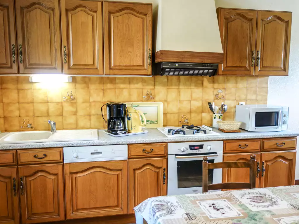 4 km from Salviac: Cosy, comfortable single-family house "Pech Gaillard", surrounded by trees. In a hamlet 4 km from the centre of Salviac, 17 km from the centre of Gourdon, 34 km from the centre of Cahors, in a quiet position, in the countryside. Private: large garden (not fenced) with lawn and trees, swimming pool fenced (14 x 7 m, depth 100 - 180 cm, seasonal availability: 15.May. - 31.Oct.) with alarm system. Parking at the house on the premises. Shop 4 km, grocery 4 km, supermarket 4 km, restaurant 10 km, bus stop "Dégagnac" 9 km. Tennis 4 km. Please note: car recommended.4-room house 122 m2 on 2 levels. Beautiful and rustic furnishings: living/dining room with open-hearth fireplace and satellite TV (flat screen). Exit to the garden. Kitchen (oven, dishwasher, 3 gas rings, toaster, kettle, microwave, freezer, electric coffee machine) with dining table. Bathroom, sep. WC. Upper floor: 2 rooms, each room with 1 french bed (140 cm, length 190 cm). 1 room with sloping ceilings with 3 beds (90 cm, length 190 cm). Sep. WC. Electric heating. Terrace 12 m2. Terrace furniture, barbecue (portable), deck chairs (6). Facilities: washing machine, iron, children's high chair, baby cot for up to 2 year olds, logs (free). Please note: suitable for families. Non-smoking house. Maximum 1 pet/ dog allowed. Smoke alarm.
