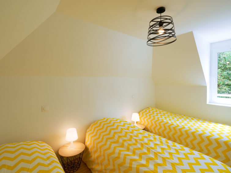 Cosy single-family house "Penhors", renovated in 2022, surrounded by trees and fields. On the outskirts, 4 km from the centre of Plovan, 4 km from the sea, 4 km from the beach, 20 m from the stream. For shared use: natural state property 2 ha, lawn. Private: garden 1'100 m2 (not fenced) lawn, parking (for 2 cars) on the premises. Grocery 6 km, supermarket 3 km, restaurant 4 km, bus stop 4 km, sandy beach 4 km. Surf school 4 km. Nearby attractions: Penmarc'h, La Torche 19 km, Pont l'Abbé 12 km, Audierne 23 km, Quimper 26 km, Douarnenez 19 km, pointe du Raz 35 km. Hiking paths: GR 34, Baie d'Audierne, Cap Sizun. Please note: Property ref. FR2948.601.1 is situated on the same property."Penhors", 3-room house 90 m2 on 2 levels. Beautiful and cosy furnishings: living/dining room with dining table and TV (flat screen). Exit to the terrace. Open kitchen (oven, dishwasher, 3 induction hot plates, toaster, kettle, microwave, electric coffee machine). Shower, sep. WC. Electric heating. Upper floor: 1 room with sloping ceilings with 1 french bed (160 cm, length 200 cm). 1 room with sloping ceilings with 3 beds (80 cm, length 190 cm). South facing position. Terrace furniture, barbecue (portable), deck chairs (2). Facilities: washing machine, dryer, children's high chair, baby cot for up to 2 year olds, hair dryer. Internet (WiFi, free). Please note: non-smoking house. Smoke alarm. Offer by a private individual according to Art. 155, IV of CGI.
