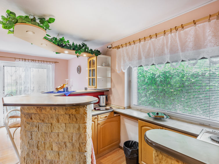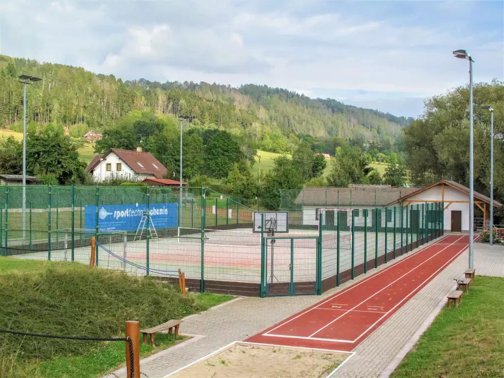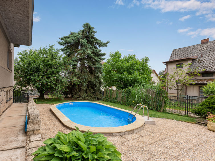 This nice holiday house with a sunken swimming pool is located in the small village of Tatobity, only 10 km from the famous place Hruba Skala, where the Bohemian Paradise Protected Landscape Area begins. Comfortable house "Penzion Jindřiška", 2 storeys, detached, built in 1997. In the resort, in a sunny position, in a cul-de-sac, in the countryside. Private: property (fenced), garden 200 m2, swimming pool (6 x 3 m, seasonal availability: 01.Jun. - 31.Aug.). Barbecue, children's playground (sandbox), parking at the house. Grocery, restaurant, bus stop 300 m, outdoor swimming pool 12 km. Golf course (9 hole) 9 km, tennis 200 m, ski lift 4 km, children's playground 50 m. Nearby attractions: Hora/Rozhledna Kozákov 6 km, Hrubá Skála/CHKO Český ráj 10 km, Semily, Turnov 10 km, Hrad trosky 13 km, Jičín 20 km. Well-known ski regions can easily be reached: Vysoké nad Jizerou 25 km.3-room house 80 m2 on 2 levels. Living room with Scandinavian wood stove and satellite TV. Exit to the garden. Kitchenette (2 hot plates, microwave, freezer, electric coffee machine) with dining table. Shower/WC. Electric heating, wood heating, boiler. Upper floor: 1 room with sloping ceilings with 1 bed and 1 double bed. 1 room with sloping ceilings with 1 bed and 1 double bed. Terrace furniture. Facilities: Internet (WiFi, free). Please note: suitable for families. Non-smoking house. Maximum 3 pets/ dogs allowed.