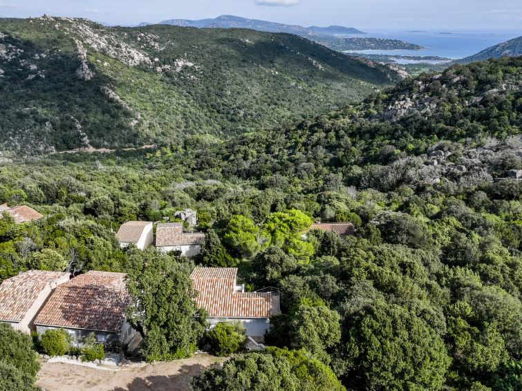 Residence "Pietralunga". In the hamlet Pietralunga with 20 houses, on a slope, 6 km from the sea, 6 km from the beach. In the complex: motor access (mountain road). Parking. Grocery 6 km, supermarket 9 km, shopping centre 10 km, restaurant 6 km, bakery 4 km, bus stop 1 km, sandy beach "Santa Giulia" 6 km. Marina 10 km, golf course (9 hole) 5 km, riding stable 11 km. Nearby attractions: Bonifacio 22 km, Figari 18 km, Porto Vechio 12 km, Iles Lavezzi. Well-known lakes can easily be reached: Lac de l'Ospedale. Hiking paths: Aiguille de Bavella. Please note: car recommended.3-room house 82 m2 on 2 levels. Comfortable and beautiful furnishings: living/dining room with 1 sofabed (120 cm, length 190 cm), TV (flat screen). Exit to the terrace. 1 room with 1 french bed (140 cm, length 190 cm). Open kitchen (oven, dishwasher, 3 induction hot plates, toaster, kettle, freezer, electric coffee machine). Exit to the terrace. Shower/WC. Electric heating, air-conditioning. On the lower ground floor: (exterior staircase), 1 room with 1 french bed (140 cm, length 190 cm), shower/WC. Exit to the terrace. Air-conditioning. Beautiful view of the sea. Facilities: washing machine. Internet (WiFi, extra). Parking (2 cars). Please note: non-smoking house. Smoke alarm. No internal connecting door between the floors.