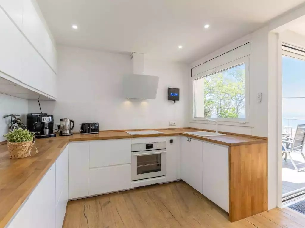 Els Grecs: Simple single-family house "Pitágoras", built in 2021. In the district of Els Grecs 2.2 km from the centre of Roses, in a quiet, sunny, elevated position on top of a hill, residential area (villas), 2 km from the sea, south-west facing position. Private: property with wildlife garden and flowers, swimming pool (4 x 3 m, depth 115 cm, seasonal availability: 01.May. - 30.Oct.). Single garage. Supermarket 2.5 km, shopping centre 2.5 km, restaurant 500 m, bus stop 2.2 km, railway station "Figueres" 23 km, sandy beach 2 km, indoor swimming pool 3 km. Sports harbour 2 km, golf course (18 hole) 20 km, sailing school 2 km, tennis 3 km, minigolf 2.5 km, sports centre 3 km. Nearby attractions: Parque Acuático Aquabrava Roses 4 km, Aerodromo Empuriabrava 9 km, Atracción túnel del viento 9 km, Museo Dalí Figueres 23 km, Castillo y festival de Peralada 22 km, Monasterio Sant Pere de Rodes 22 km. Please note: car recommended. The owner does not accept any groups. The owner does not accept any youth groups. The keys‘ handover takes place by the agency Interhome in Roses.4-room villa 140 m2. Spacious and bright, fully renovated, modern furnishings: living/dining room with dining table and satellite TV. Exit to the patio, to the swimming pool, south facing position and west facing position. 1 open room with 1 double wall-trunk bed (140 cm, length 190 cm). 1 room with 1 french bed (160 cm, length 190 cm), shower/WC, air conditioning and forced-air heating. 1 room with 1 french bed (160 cm, length 190 cm), bath/WC, air conditioning and forced-air heating. Open kitchen (oven, dishwasher, 4 induction hot plates, toaster, kettle, microwave, freezer, electric coffee machine). Patio. Terrace furniture. Marvellous view of the sea and the mountains. Facilities: washing machine. Internet (WiFi, free). Garage (1 car). Please note: non-smoking house. TV only FR. HUTG063892 // Reg. Nr.: ESFCTU000017019000136091000000000000000000HUTG0638926