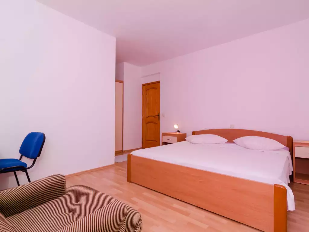 Dingač - Borak 5 km from Trstenik: Beautiful apartment house "Plavac Mali". Outside the resort, 4 km from the centre of Potomje, in a quiet, sunny position on a slope, 30 m from the sea, 30 m from the beach, in a cul-de-sac, in the countryside, south facing position. For shared use: outdoor shower, barbecue. In the house: internet access. Parking at the house on the premises. Shop 4 km, restaurant 30 m, bus stop 4.2 km, pebble beach 130 m, rocky beach 30 m. The restaurant 30m from the house opened from 20.06. - 01.09. Further restaurant in Trstenik, 5km from the house. In Borak renting of diving equipement and boat diving excursions. In Žuljana diving school, 24 km from Borak.4-room apartment 110 m2 on 1st floor. Beautiful and cosy furnishings: large living/dining room 30 m2 with open-hearth fireplace and satellite TV. Exit to the terrace. 1 room with 1 double bed (2 x 90 cm, length 200 cm), shower/WC and air conditioning. Exit to the balcony. 1 room with 1 french bed (180 cm, length 200 cm), shower/WC and air conditioning. Exit to the balcony. 1 room 20 m2 with 1 double bed (2 x 80 cm, length 200 cm), hip bath/WC and air conditioning. Exit to the balcony. Open kitchen (4 hot plates, oven, dishwasher, microwave, freezer). 3 balconies, large terrace 34 m2 partly roofed. Terrace furniture. View of the sea. Facilities: washing machine. Internet (WiFi, free).