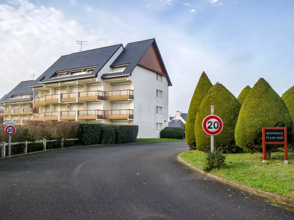 Residence "Plein Sud", 3 storeys. In the resort 2 km from the centre of Quiberon, 300 m from the sea, 300 m from the beach. Supermarket 1 km, bus stop 600 m, sandy beach 300 m (small), thermal baths "Thalassothérapie de Quiberon" 1.8 km. Marina 450 m, golf course (9 hole) 800 m. Nearby attractions: Quiberon et la côte sauvage, Saint Pierre Quiberon 6 km, Carnac et les alignements 19 km, Auray et le Port de St Goustan 30 km, Vannes 45 km, Lorient 65 km. The keys‘ handover takes place by the agency Interhome in Quiberon, 2 km.2-room apartment 38 m2 on 2nd floor. Object suitable for 2 adults + 1 child. Simple and beautiful furnishings: living room with 1 sofabed (140 cm, length 190 cm), dining table and TV (flat screen). Exit to the balcony. 1 room with 1 french bed (1 x 140 cm, length 190 cm). Kitchenette (oven, dishwasher, 4 ceramic glass hob hotplates, microwave). Bathroom, sep. WC. Electric heating. Balcony furniture, deck chairs. Distant view of the sea. Facilities: washing machine. Internet (WiFi, extra). Parking space n 21. Please note: maximum 1 pet/ dog allowed. Smoke alarm. 56186 000148 C8