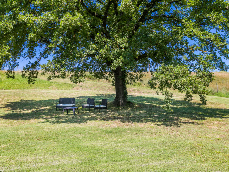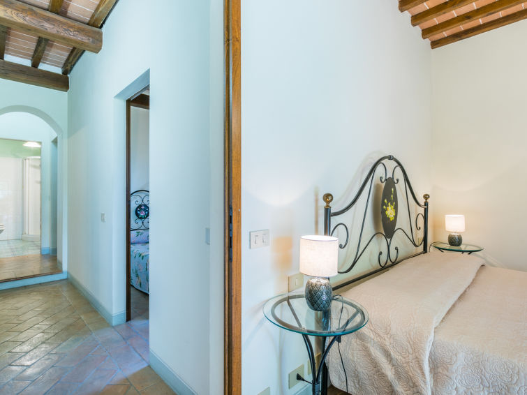 Recently renovated farmhouse, divided into two independent apartments, but let as one unit. Panoramic position, 3 km from Casole d'Elsa, lovely small town at the edge of the Chianti region. Made of stone, the house has maintained its rural architecture with terracotta flooring and partly exposed wooden beams. It is especially suiable for a relaxing week. The furnishings are rustic style. Outdoor rooms, which border on cultivated grounds. Beautiful priviate swimming pool, furnished outdoor area for open air dinners, barbecue. There is a wonderful, panoramic and hilly road just next door, which can be followed and which leads to beautiful beaches and coasts, these are only a bit more than an hour away. Old farmhouse "Podere S Giovanni", renovated. 3 km from the centre of Casole d'Elsa, 35 km from the centre of Siena, 55 km from the centre of Firenze, on top of a hill, in the countryside. Private: park 3'000 m2, swimming pool (6 x 12 m, depth 30 - 145 cm, seasonal availability: 04.May. - 28.Sep.) with internal staircase and salt-electrolysis pool-cleaning system. Outdoor shower, terrace, garden furniture, barbecue. In the house: with TV, sun terrace, central heating system, washing machine, heating to be paid on the spot, heating available only from 01.Nov. - 07.Apr.. Room cleaning on request (extra). Cook on request (extra). Motor access to the house. Parking at the house. Shop 3 km, grocery 3 km, restaurant 3 km, bus stop 3.2 km, railway station "Poggibonsi" 25 km. Golf course (18 hole) 20 km, tennis 3 km, riding stable 10 km. Nearby attractions: Monteriggioni 23 km, San Gimginano 26 km, Castellina in Chianti 32 km, Volterra 34 km, Radda in Chianti 44 km, Lajatico, Peccioli 53 km. The owner does not accept any youth groups.7-room house 250 m2 on 2 levels, on the ground floor. Tasteful furnishings: living room with open-hearth fireplace and TV. 1 double bedroom. 1 room with 2 beds. Kitchenette (4 hot plates, oven, dishwasher, freezer). Bath/bidet/WC, shower/bidet/WC. On the lower ground floor: (exterior staircase) living room with 1 double sofabed, open-hearth fireplace and satellite TV. 2 double bedrooms. 1 room with 2 beds. Kitchenette (4 hot plates, oven, dishwasher, freezer). Shower/bidet/WC, bath/shower/bidet/WC. Large garden. Terrace furniture, barbecue, deck chairs. Beautiful panoramic view of the countryside. Facilities: washing machine. Internet (WiFi, free). Parking at the house. Please note: maximum 1 pet/ dog allowed. Smoke alarm, fire extinguisher. IT052004B54XI2N9W2
