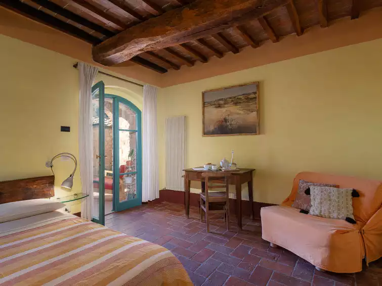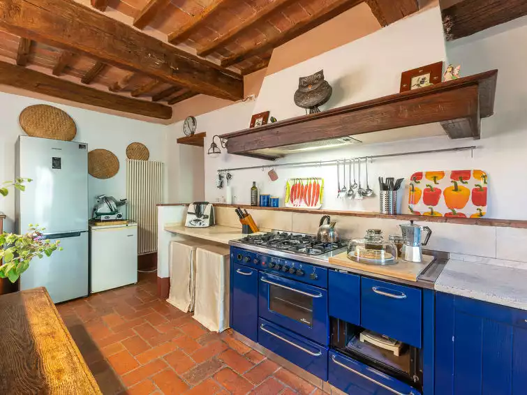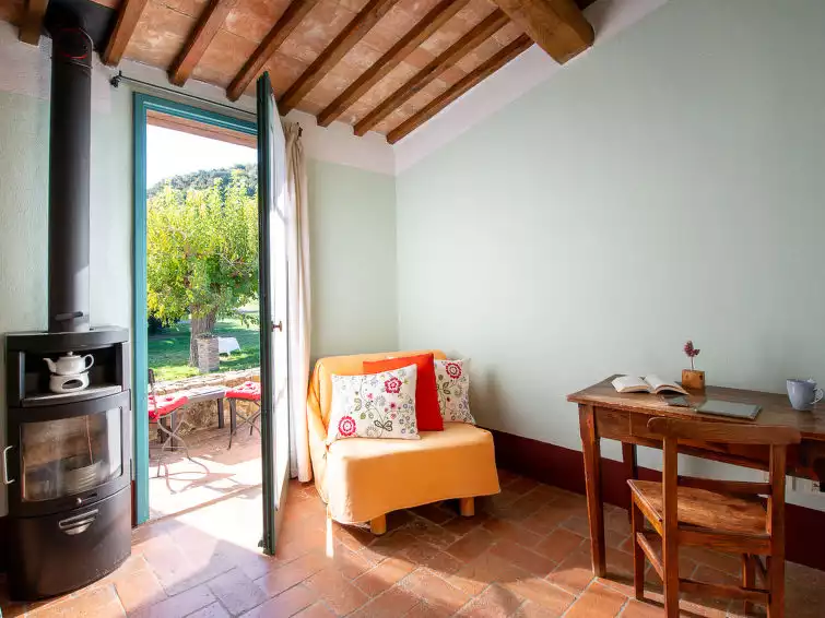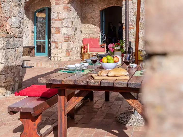 Agriturismo "Podere Vignali", 2 storeys from the 12nd century, built in 1300, surrounded by meadows and fields. 2 apartments in the property. 2 km from the centre of Pari, in a secluded, quiet, sunny position, 60 km from the sea. For shared use: large garden with meadow. Private: swimming pool (10 x 4 m, depth 100 - 150 cm, seasonal availability: 01.May. - 30.Sep. pool opening hours: 08:00-20:00) with internal staircase. Garden furniture, barbecue, pool maintenance by the owner/gardener. In the house: washing machine (extra). Cook on request (extra). 1.5 km long steep, narrow motor access (via unmade road). Parking on the premises. Grocery 2 km, supermarket 20 km, restaurant 2 km, bar 2 km, bakery 2 km, sandy beach "Marina di Grosseto" 60 km, thermal baths "Petriolo" 5.6 km. Walking paths from the house 50 m. Nearby attractions: Siena 39 km, Grosseto 46 km, Montalcino 48 km. Hiking paths: Riserva Natuarle Farma 11 km. Please note: car recommended. Baby equipment on request (included). Local sale of farm products. The owner lives in the same residence. The owner has a dog.6-room semi-detached house 150 m2, on the ground floor. Spacious, rustic and tasteful furnishings: living room with TV. Exit to the loggia. 1 room with 1 sofabed, 1 double bed, shower/bidet/WC and wood-burning stove. Exit to the terrace, to the loggia. 1 double bedroom, without window with shower/bidet/WC and wood-burning stove. Exit to the garden. 1 room with 1 sofabed, 1 double bed, shower/bidet/WC and wood-burning stove. Exit to the loggia. 1 open large room with sloping ceilings, on 2 levels with 1 double sofabed, 1 double bed, shower/bidet/WC and wood-burning stove. Exit to the garden, to the patio. Large kitchen (oven, dishwasher, 6 gas rings, kettle, freezer, electric coffee machine) with open-hearth fireplace, dining table and separate WC. Exit to the loggia. Natural stone floors. Comfortable furnishings in the country house style. Large terrace. Terrace furniture, barbecue. Very beautiful panoramic view of the countryside and Pari. Facilities: washing machine (extra). Mosquito net, children's high chair, baby cot for up to 2 year olds, hair dryer, logs (extra). Internet (WiFi, free). Please note: non-smokers only. Maximum 1 pet/ dog allowed. No internal connecting door between the separated properties. All rooms are not connected internally but only have access from the outside. Please check floor plan. IT053008B53HC5LDK3