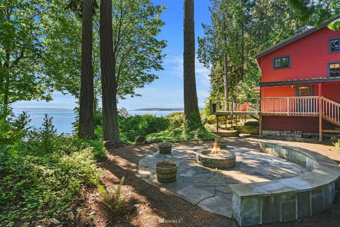 ☀ Outdoor deck with BREATHTAKING views of the Puget Sound, dining for 8, outdoor sofa and outdoor fire pit