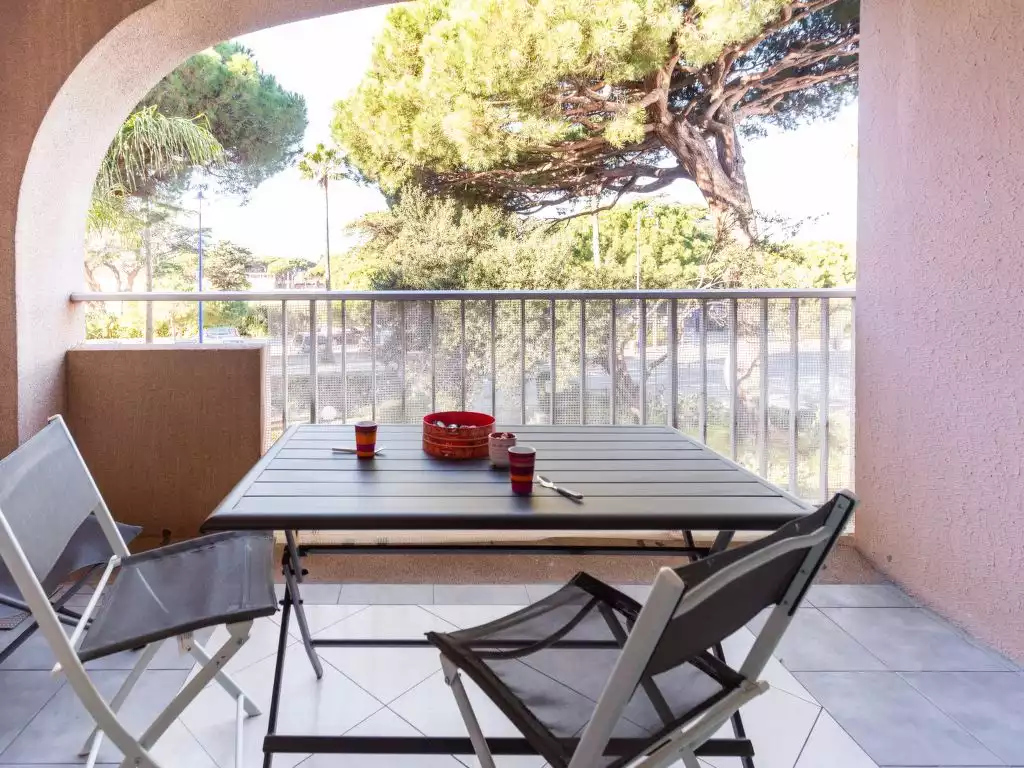 Hyères: Residence "Port de La Gavine". In the district of Port de Hyères, 120 m from the sea, 250 m from the beach. For shared use: children's playground (slide). In the complex: lift. Public parking 160 m. Shop, grocery 100 m, shopping centre 5.9 km, restaurant, bar, bakery 100 m, bus stop 50 m, sandy beach "Des Pesquiers" 250 m. Sports harbour 20 m. Nearby attractions: Magic World 1.7 km, Kiddy parc 1.5 km, Parc Olbius Riquier 4.7 km, Jardin Zoologique Tropical 15 km. Please note: the keys‘ handover takes place by the agency INTERHOME in Hyères sur le port. Airfield close by.1-room studio 39 m2 on 1st floor. Spacious and bright, fully renovated in 2021, beautiful and modern furnishings: living/dining room with 1 double wall-trunk bed (140 cm, length 190 cm), TV (flat screen). Exit to the balcony. Kitchenette (oven, dishwasher, 4 induction hot plates, toaster, kettle, microwave, freezer, electric coffee machine, Capsules for coffee machine (Expresso) extra) with dining table. Shower, sep. WC. Air-conditioning, forced-air heating. Balcony 7 m2. Balcony furniture. View of. Facilities: washing machine, dryer. Internet (WiFi, extra). Parking space n 848 environ 400 M. Please note: TV only FR. Smoke alarm.