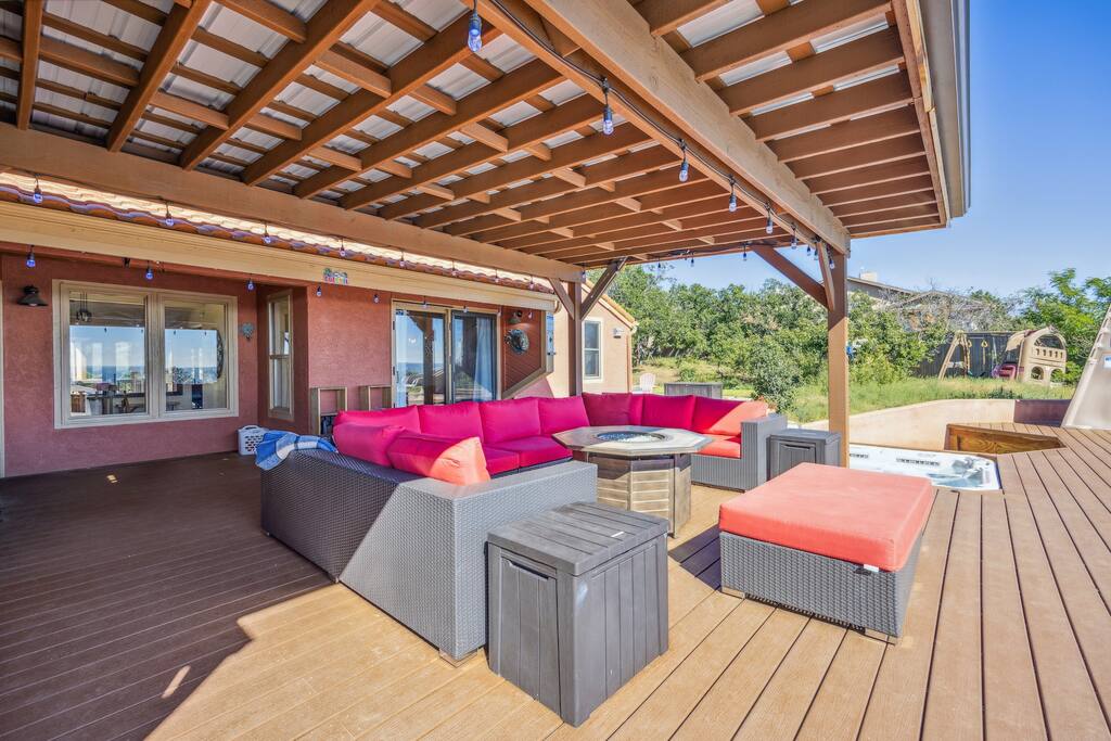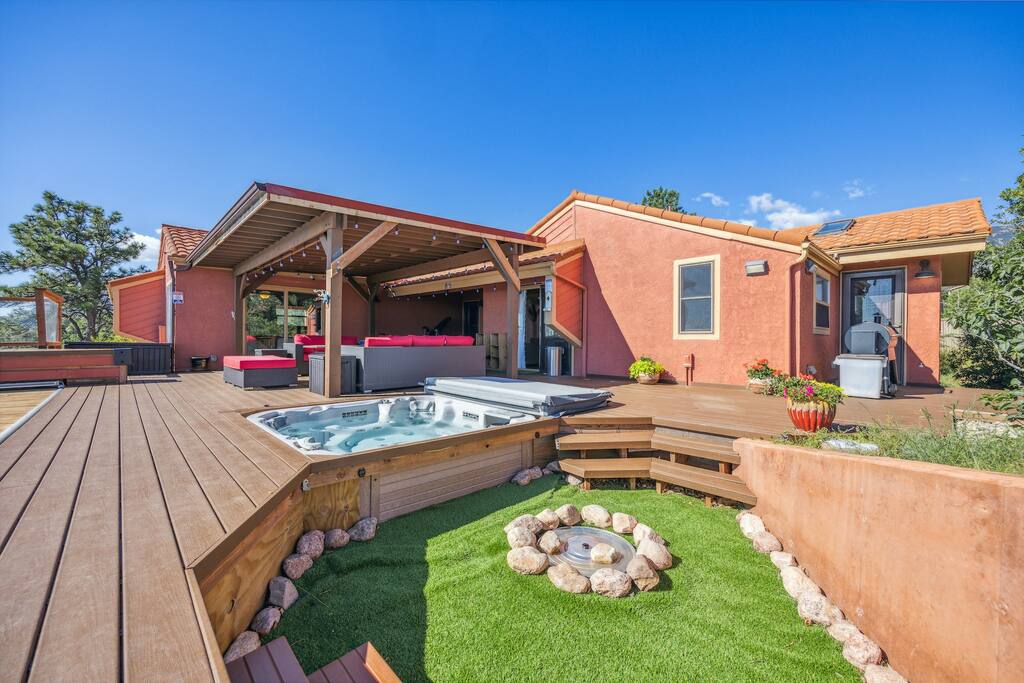 Bring the whole family & enjoy the great indoors and outdoors! Enjoy the hot tub year round, & the outdoor heated pool (85 deg) from May-September. Large living room has your relaxation in mind-a huge leather sectional & zero gravity massage chair. Two dining areas means comfort for all. 2 Master Bedrooms, 1 Ensuite Bedroom, a bunk room with 1 set of twin beds & full bed. Large screen TV's abound! Take a hike or ride out the back gate to access trails. 2 decks with outdoor seating & firepits.