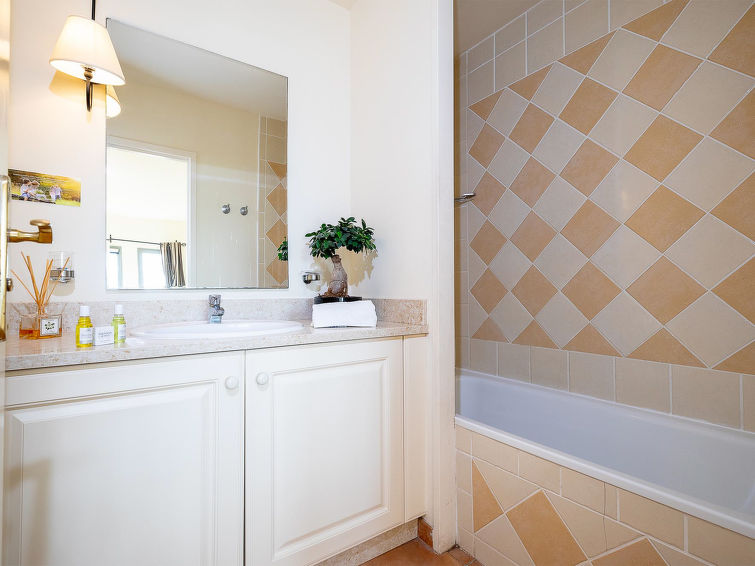 Saumane 3 km from L'Isle-sur-la-Sorgue: Large, beautiful, cosy resort "Provence Country Club". 131 apartments in the residence. In the hamlet Saumane 3 km from the centre of L'Isle-sur-la-Sorgue, 18 km from the centre of Carpentras, 32 km from the centre of Avignon, in the countryside, on the golf course. For shared use: property with lawn and trees, natural garden, meadow, swimming pool (20 x 10 m, seasonal availability: 16.May. - 10.Oct.). Unconventional pool shape. Children's pool, tennis, terrace. In the complex: reception, WiFi, fitness room, washing machine, tumble dryer (for shared use, extra). Bread roll service. Parking on the premises. Supermarket 5 km. Golf course (18 hole) 50 m. Please note: the photograph shows a typical example. The holiday properties may differ in living space, floorplan, equipment and furnishing. Wi-fi only at the reception."Provence Country Club", 2-room apartment 38 m2. Practical furnishings: living/dining room with dining table and TV can be hired. 1 room with sliding door with 2 beds. Kitchenette (dishwasher, 4 ceramic glass hob hotplates, toaster, kettle, microwave, electric coffee machine). Bathroom, sep. WC. Electric heating. Balcony or terrace. Terrace furniture, balcony furniture. Facilities: safe (extra), children's high chair, baby cot. Internet (WiFi, extra). Parking. Please note: non-smokers only. Maximum 2 pets/ dogs allowed. Smoke alarm, fire extinguisher.
