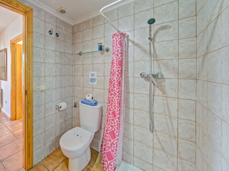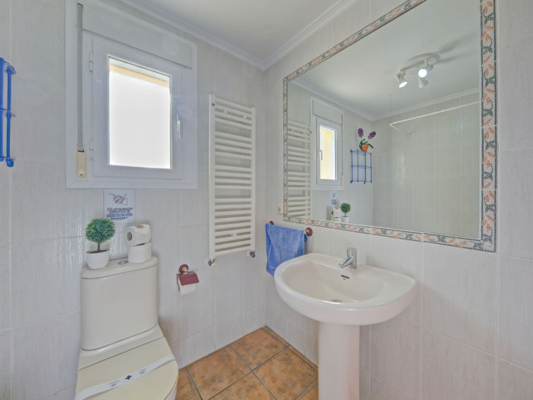 Terraced house "Residencial Puerta de Calpe". 32 houses in the resort. 1 km from the centre of Calpe, 60 km from the centre of Alicante, 120 km from the centre of Valencia, 1.8 km from the sea, 1.8 km from the beach. For shared use: 2 swimming pools kidney-shaped (seasonal availability: 01.Jun. - 30.Sep.). Children's pool, outdoor shower. Private: property (fenced), parking on the premises. Supermarket 1 km, restaurant 1 km, bus stop 750 m, sandy beach "Playa del Arenal" 2 km. Tennis 1.5 km. The owner does not accept any youth groups."Puerta de Calpe 8", 4-room semi-detached house 120 m2 on 2 levels. Practical and comfortable furnishings: living/dining room with 1 folding bed (80 cm, length 180 cm), dining table, satellite TV, air conditioning and forced-air heating. Exit to the terrace. 1 room with 2 beds (90 cm, length 190 cm). Kitchen (oven, 4 gas rings, toaster, kettle, microwave, freezer, electric coffee machine). Shower/WC. Upper floor: 1 room with 1 french bed (150 cm, length 190 cm), bath/bidet/WC, air conditioning and forced-air heating. Exit to the terrace. 1 room with 2 beds (90 cm, length 190 cm). Exit to the balcony. Balcony, terrace. Terrace furniture, balcony furniture, barbecue (portable), deck chairs (2), box-room. Facilities: washing machine, iron, children's high chair, baby cot for up to 2 year olds, hair dryer. Internet (WiFi, free). Parking space n 25 (1 car). Suitable for families. Maximum 2 pets/ dogs allowed. AT-438383-A // Reg. Nr.: ESFCTU00000302900054968200000000000000000AT-438383-A7