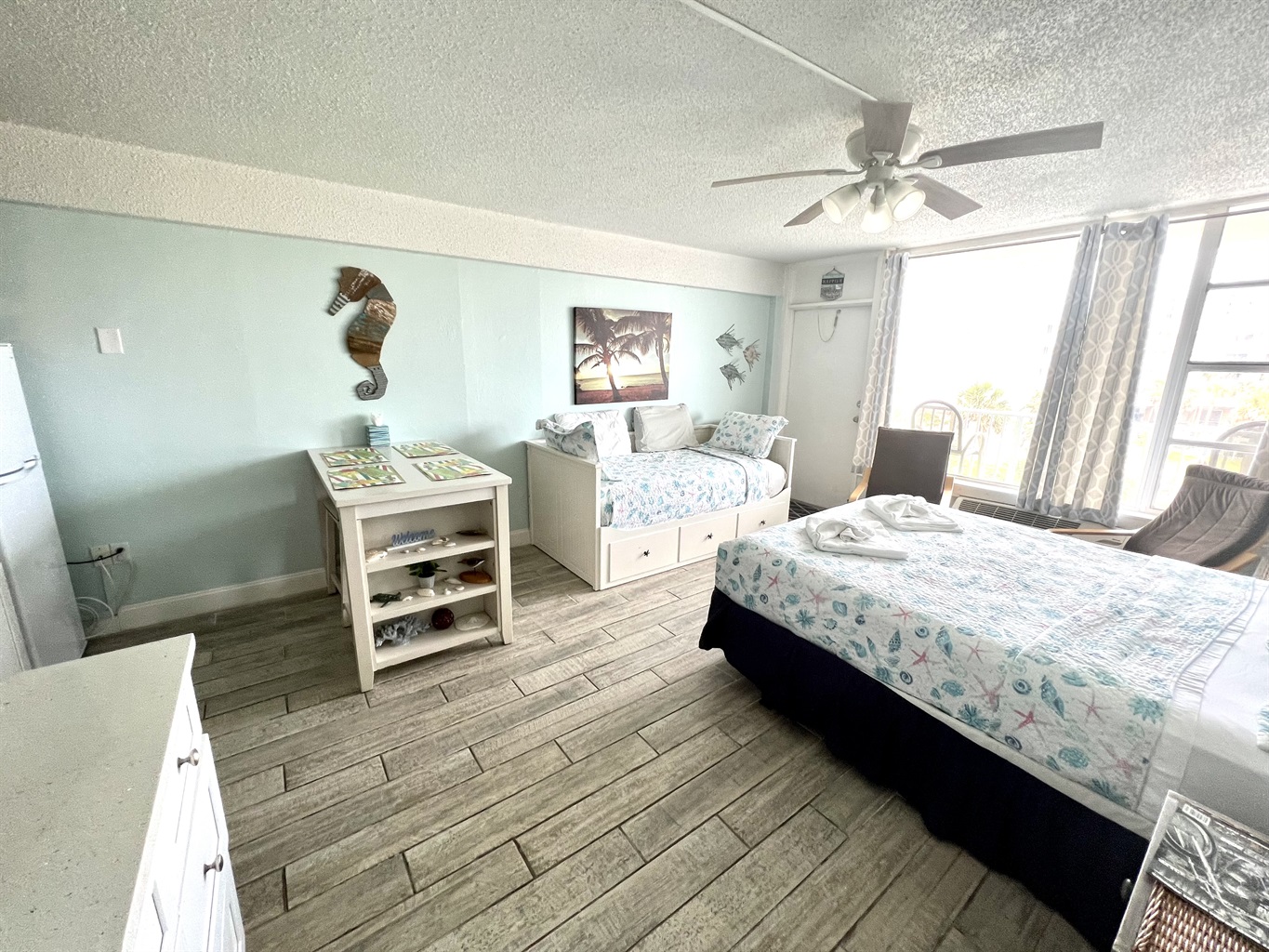 Welcome to your serene escape at our newly remodeled beachfront haven in Daytona Beach. Relax on your balcony, gazing at the ocean from the 4th floor of the Daytona Beach Club building. After your day on the beach, sink into the comfort of a queen-size bed and a snug twin daybed for a quick nap before heading out to hit the town!