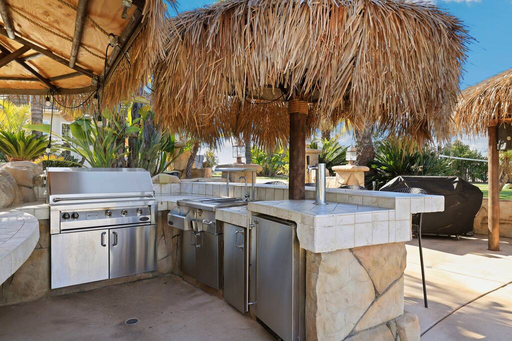 ★ OUTDOOR KITCHEN + BBQ! Grillmasters will absolutely love the massive gas BBQ and outdoor kitchen as they serve food and drinks at the swim-up bar! A host’s delight!