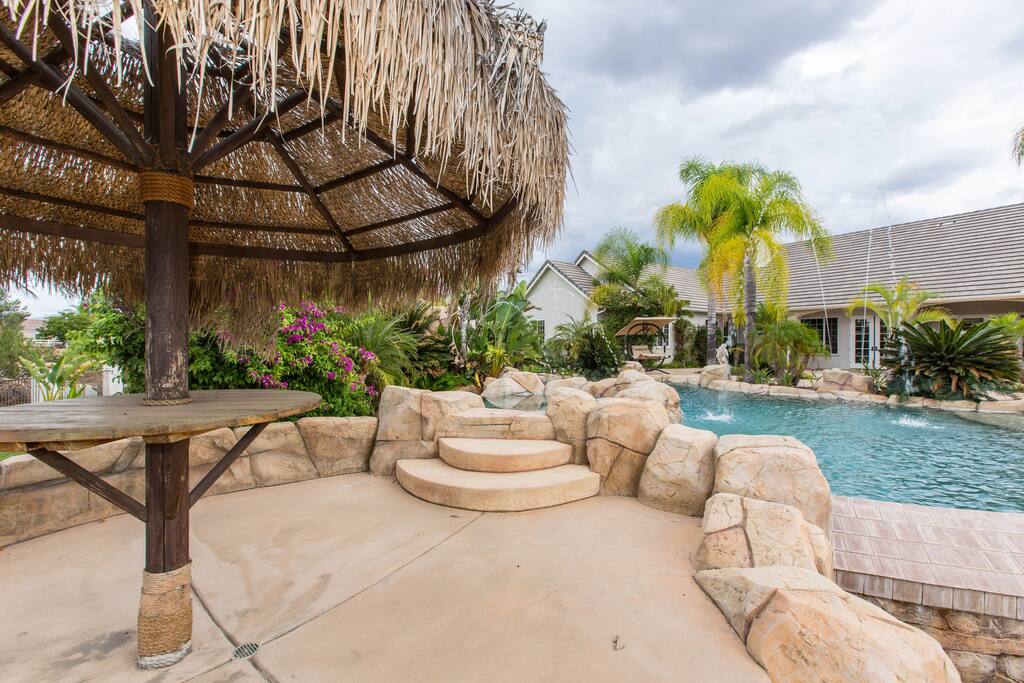 ★ BEAUTIFUL CUSTOM POOL! Cool off and catch some Temecula sun in a gorgeous tropical pool surrounded with Bose audio speakers, sky jets, waterfall, rock slide, tropical water effects/lighting, and an unforgettable grotto! You’ll enjoy your favorite music while enclosed within the waterfall and grotto! Note: pool heating is not available.