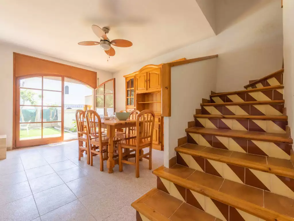 Creixell 22 km from Tarragona: Child friendly, cosy, simple terraced house "Urb Port Lligat", 2 storeys. In a sunny position, 300 m from the sea, 300 m from the beach. For shared use: swimming pool angular (12 x 6 m, depth 60 - 160 cm, seasonal availability: 10.Jun. - 15.Sep. pool opening hours: 10:00-22:00). Outdoor shower. Private: garden (fenced), public parking on the road. Grocery 1.5 km, supermarket 1.5 km, restaurant 200 m, bus stop "Creixell" 1.1 km, sandy beach "Els Muntanyans" 300 m. Nearby attractions: Port Aventura 35 km, Aquopolis 35 km, Jungle Trek 15 km. Please note: car recommended. Object suitable for 4 adults + 3 children. The owner does not accept any youth groups. Railway line closeby. Neighbourhood highly sensitive to noise. Quietness and good behaviour expected."Residencial Port Lligat", 4-room terraced house 95 m2. Object suitable for 4 adults + 3 children. Simple and practical furnishings: living/dining room with digital TV. Exit to the patio. Kitchen (oven, toaster, kettle, microwave, electric coffee machine). Sep. WC. No heating option. Upper floor: 2 rooms, each room with 1 french bed (135 cm, length 180 cm). 1 room with 2 beds (90 cm, length 190 cm), 1 sleeping facility (80 cm, length 190 cm). Bath/WC. Patio. Terrace furniture, barbecue, deck chairs (2). Facilities: washing machine, children's high chair, baby cot for up to 3 year olds. Internet (WiFi, free). Garage, height 210 cm, width 350 cm. Please note: suitable for families. Non-smoking house, parking space for small car only. TV only ES. HUTT-064671 // Reg. Nr.: ESFCTU00004302700018503700000000000000000HUTT-0646714
