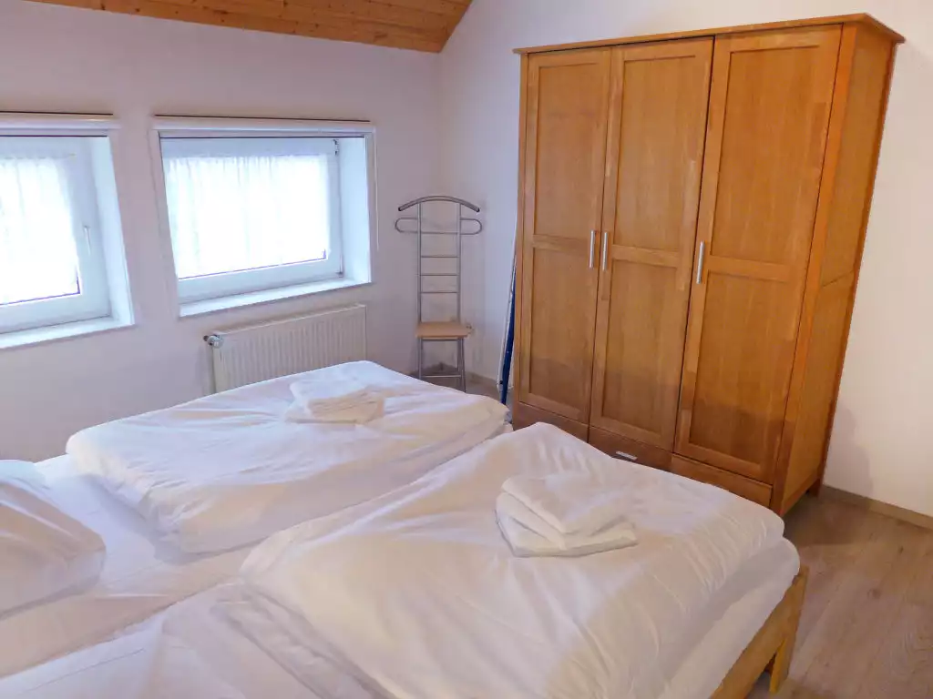 Beautiful single-family house "Reuse". In the resort, in a quiet position, 1.2 km from the sea, 1.2 km from the beach, in a cul-de-sac. Private: well-kept garden 480 m2 (fenced) with lawn and wildlife garden. In the house: central heating system. Parking (for 2 cars) at the house, single garage. Supermarket 550 m, restaurant 600 m, bakery 850 m, café 850 m, bus stop 200 m, railway station "Norddeich" 2 km, ferry 2 km, sandy beach 1.2 km, outdoor swimming pool 14 km, indoor swimming pool 500 m. Golf course (18 hole) 8 km, surf school 1.3 km, tennis 2 km, minigolf 500 m.5-room house 120 m2 on 2 levels, on the ground floor. Modern and cosy furnishings: living room 21 m2 with open-hearth fireplace and cable TV (flat screen), CD-player, hi-fi system and DVD. Dining room. 1 room 11 m2 with 1 double bed (2 x 100 cm, length 200 cm). Kitchen (oven, dishwasher, 4 ceramic glass hob hotplates, toaster, kettle, microwave, electric coffee machine). Shower/WC. Upper floor: 1 room 14 m2, with sloping ceilings with 2 beds (100 cm, length 200 cm). 1 room 21 m2, with sloping ceilings with 1 double bed (2 x 100 cm, length 200 cm), cable TV (flat screen). Shower/WC. Terrace. Terrace furniture, barbecue (portable), deck chairs (2), conservatory. Facilities: washing machine (extra). Children's high chair, hair dryer, logs (extra). Internet (WiFi, free). Please note: non-smoking house. Maximum 2 small pets/ dogs allowed. Smoke alarm. Winter garden with underfloor heating, seating area and exit to the terrace with awning. Free handcart. A maximum of 2 small dogs are allowed.