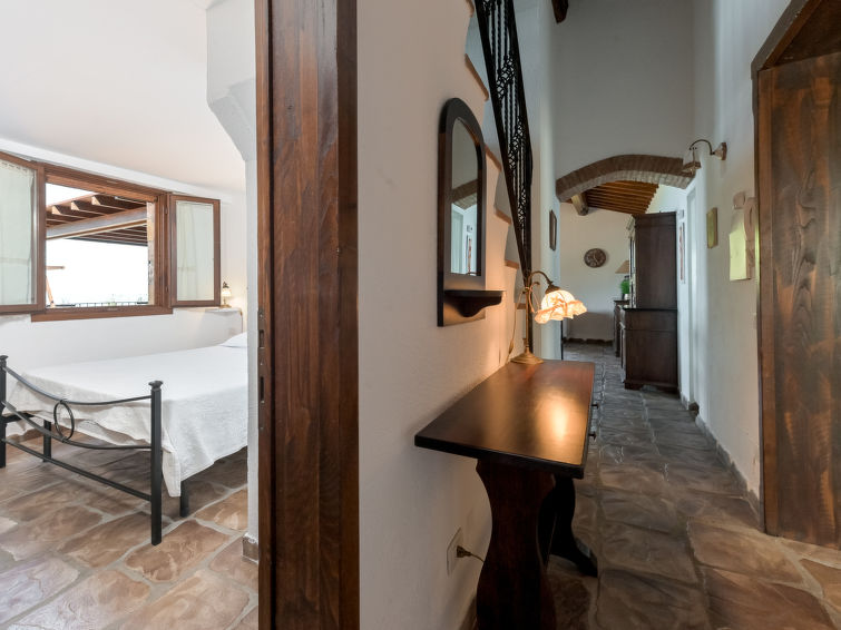 Beautiful, rustic villa "Ricali", surrounded by trees and fields. Property composed of main house and outbuilding 4 km from the centre of Porto Santo Stefano, 15 km from the centre of Orbetello, in a secluded position on a slope, 2.1 km from the sea. Private: property 12'000 m2 (fenced), well-kept terraced garden with lawn and wildlife garden, swimming pool (12 x 4 m, depth 140 - 220 cm, seasonal availability: 15.Apr. - 15.Oct.). Unconventional pool shape. Outdoor shower, arbour, terrace, garden furniture, barbecue house, pool maintenance by the owner/gardener. In the house: table tennis, table football. Narrow motor access. Parking on the premises. Shop 4 km, railway station "Orbetello" 17 km, ferry "Civitavecchia" 85 km, sandy beach "Giannella" 12 km pebble beach "Cala di Gesso" 2.1 km. Golf course (18 hole) 15 km, walking paths from the house 850 m. Nearby attractions: Giardino dei Tarocchi 35 km, Capalbio 37 km, Grosseto 52 km. Hiking paths: Mountain-Bike 2 km.5-room house 100 m2 on 2 levels. Comfortable and cosy furnishings: living/dining room with open-hearth fireplace (only for decoration), dining table, TV and hi-fi system. Exit to the terrace. 1 room with 1 double bed (160 cm). 1 room with 1 double bed (160 cm), shower/WC. 1 room with 1 bed (80 cm), 1 double bed (160 cm), shower/bidet/WC. Exit to the garden. Open kitchen (oven, dishwasher, 4 gas rings, toaster, kettle, microwave, freezer, electric coffee machine). Exit to the terrace. Bath/bidet/WC. Upper floor: 1 open room with sloping ceilings with 1 bed (80 cm), 1 sofabed (80 cm). Oil heating. Natural stone floors. Terrace 50 m2, roofed. Deck chairs. Marvellous view of the sea. Facilities: washing machine, mosquito net, baby cot for up to 2 year olds. Internet (WiFi, free). Please note: one double bedroom is outside the apartment. Non-smokers only. No internal connecting door between the separated properties. Bedlinen, towels, final cleaning and all energy costs are included. IT053016B4G7NID8ED