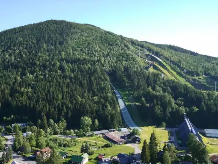 Child friendly, cosy apartment block, 3 storeys. In the resort 200 m from the centre of Harrachov, in an elevated position, 600 m from the skiing area, 500 m from the river. For shared use: property, garden. Garden furniture, barbecue, fireplace, children's playground (slide, swing, sandbox). In the house: central heating system. Breakfast (extra). Storeroom available. Parking at the house. Grocery, restaurant 300 m, café 500 m, bicycle rental 300 m, bus stop "Harrachov, aut.nádr." 500 m, railway station "Harrachov" 4 km, outdoor swimming pool 1 km. Golf course (9 hole) 4.5 km, tennis 1 km, ski lift, chair lift, slopes, ski rental, ski school 600 m, cross country ski track 200 m. Nearby attractions: Skokanské můstky Harrachov 1 km, Mumlavský vodopád 1 km, Bobová dráha, Muzeum skla 2 km, Vosecká bouda, Dvořačky 9 km, Huťský vodopád 9 km, Vodopád Kamienczyka, Szklarki (PL) 12 km. Well-known ski regions can easily be reached: Čertova hora 600 m, Zákoutí 600 m, Ryžoviště 1.4 km, Kořenov 7 km, Rokytnice nad Jizerou 15 km. Well-known lakes can easily be reached: Vodní nádrž Souš 15 km. Hiking paths: Western City(Pl) 40 km, Karpacz Wang,Park miniatury Kowary (Pl) 44 km, Giganteria Piechowice 23km, Dinopark(Pl) 15 km."Rieger 3", 3-room apartment 46 m2 on 1st floor. 2 rooms, each room with 1 double bed. Kitchen-/living room (2 hot plates, toaster, kettle, microwave, electric coffee machine) with dining table, 1 double sofabed and satellite TV. Exit to the balcony. Shower/WC. Balcony. Facilities: Internet (WiFi, free). Please note: suitable for families. Non-smokers only.