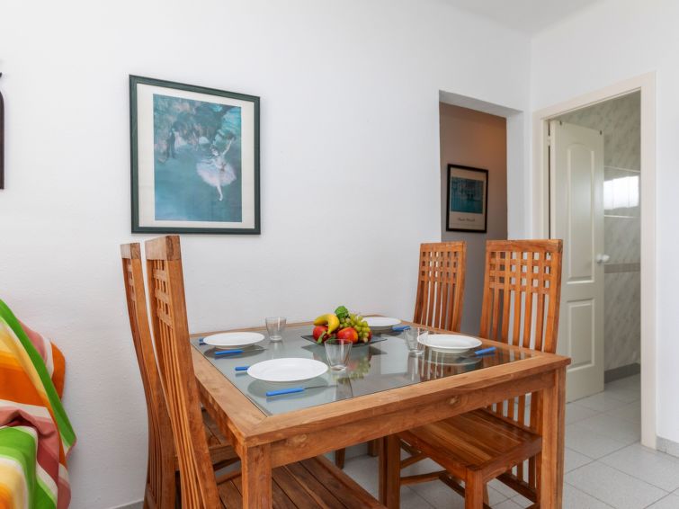 Riells: Apartment block "Riells Park". On the outskirts, 2 km from the centre of L'ESCALA, in a central, busy, sunny position, 10 m from the sea, 10 m from the beach, direct access to the beach, in a pedestrian area. In the house: lift. Shop 10 m, supermarket 400 m, restaurant, bar 5 m, internet café 400 m, bicycle rental 1.2 km, bus stop 1.2 km, railway station "FIGUERES" 30 km, sandy beach "Platja de Riells" 10 m, diving center 1 km, indoor swimming pool 1.7 km. Sports harbour 1.3 km, surf school 1 km, sailing school 1 km, riding stable 3.3 km, children's playground 170 m. Nearby attractions: Ruinas Greco-Romanas d'Empùries 3.5 km, Skydive Empuriabrava 23 km, Parque acuatico Aqua Brava Roses 27 km, Casino-Festival de Perelada 30 km, Museo Dalì Figueres 26 km, Pitch and Putt Gualta 18 hoyos 15 km. Please note: entertainment in the season.3-room apartment 50 m2 on 3rd floor. Simple and practical furnishings: living/dining room with digital TV, radio and CD-player. Exit to the terrace. 1 room with 1 x 2 bunk beds (90 cm, length 190 cm). Exit to the terrace. 1 room with 1 french bed (150 cm, length 190 cm). Exit to the balcony. Kitchen (oven, 4 ceramic glass hob hotplates, microwave, electric coffee machine). Shower/WC. No heating option. Terrace 9 m2, terrace 9 m2. Terrace furniture. Beautiful, of the sea and the resort. Facilities: washing machine. Please note: TV only ES. HUTG013075
