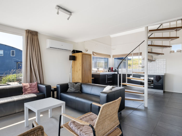 Child friendly, cosy holiday development "Jachthaven Oostmahorn". 3 km from the centre of Anjum, 14 km from the centre of Dokkum, 40 km from the centre of Groningen & Leeuwarden, on the lake. Private: terrace, garden furniture. In the complex: reception, restaurant. Footpath to the house. Parking at the house at 10 m. E-charging station. Supermarket 3 km, restaurant 100 m, bus stop "Anjum Oostmahorn" 600 m, railway station "Buitenpost" 20 km, outdoor swimming pool 30 km, indoor swimming pool 14 km, lake Lauwersmeer 10 m. Marina 300 m, golf course (18 hole) 1 km, surf school. Nearby attractions: Vuurtoren Oostmahron 500 m, Rondvaart Lauwersmeer, Wadloopcentrum Pieterburen. 10 km, Veerpont Schiermonikoog 10 km, Zeehondencentrum Pieterburen 35 km, Groningen 44 km. Please note: car recommended. The owner does not accept any youth groups. Fishing [permit required]."Rietwoning 17", 4-room house 80 m2 on 2 levels. Bright, comfortable furnishings: entrance hall. Living/dining room with dining table and flat screen. Exit to the terrace. Open kitchen (4 hot plates, dishwasher, kettle, electric coffee machine, combination microwave). Shower/WC. Heating, air-conditioning. Upper floor: (spiral staircase), 1 double bedroom with 1 double bed. 1 double bedroom with 2 beds. 1 double bedroom with 1 x 2 bunk beds. Sep. WC. Terrace. Terrace furniture, box-room. Beautiful view of the lake. Facilities: children's high chair, baby cot. Internet (WiFi, free). Parking. Please note: non-smoking house. Smoke alarm. 1 bike included.