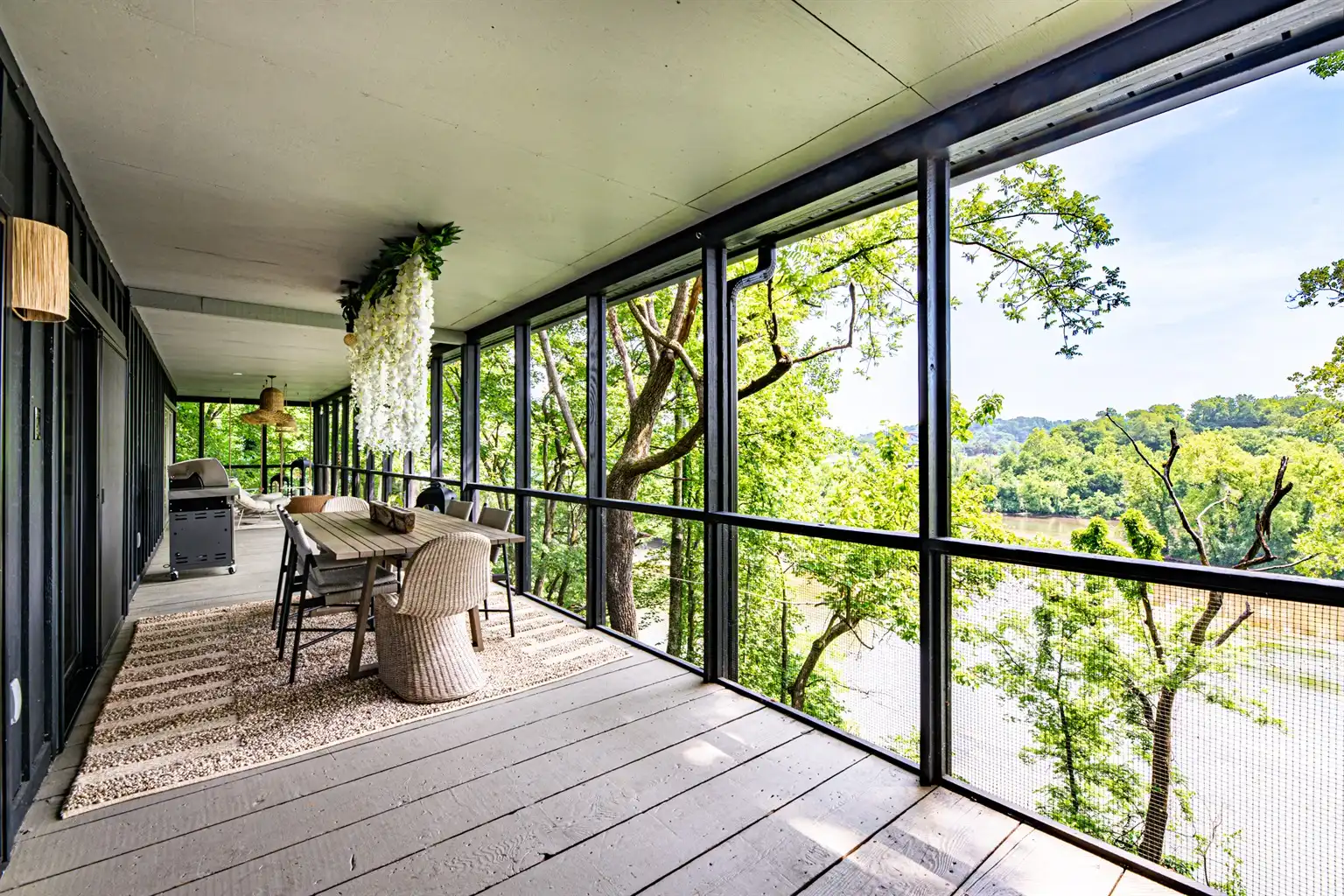Welcome to Riverstone. Featured in VIP Knoxville and Nashville Voyager, this luxury waterfront treehouse in Knoxville is perched above the Holston with views to impress and inspire. Professionally designed, she sits on more than two acres and provides everything needed to connect with loved ones and enjoy nature. Modern furnishings, organic bedding, and an expansive wrap around deck make this dreamy property stand out. From the moment you arrive, you're surrounded by natural beauty and wildlife sightings.