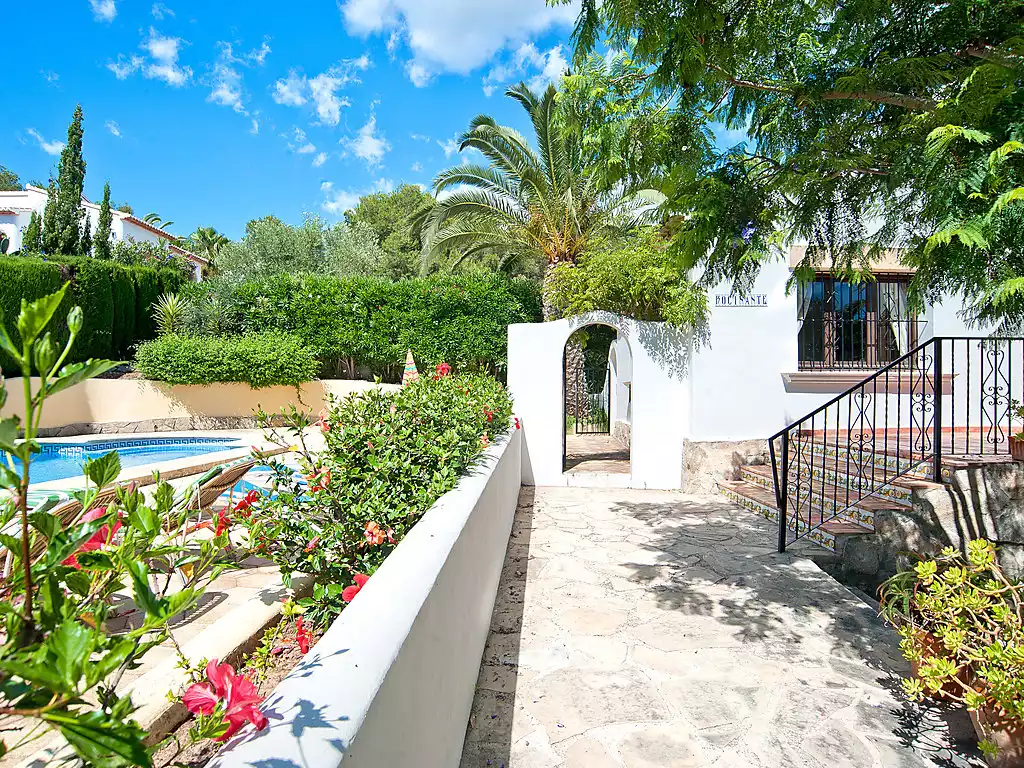 House "Rocinante", renovated. In the district of Pinosol, in a quiet, sunny position in the residential district, 3 km from the sea. Private: garden 720 m2 (fenced) with wildlife garden and flowers, orchard, swimming pool (4 x 9 m, seasonal availability: 01.Jan. - 31.Dec.) with internal staircase. Supermarket 2 km, restaurant 600 m, bus stop "Parada Arenal" 2.8 km, sandy beach "Arenal" 3 km. Groups of teenagers on request only.4-room house 127 m2. Partly renovated in 2010, comfortable furnishings: living/dining room with satellite TV (flat screen), DVD and air conditioning. Exit to the terrace. 1 room with 2 beds (90 cm, length 190 cm), air conditioning. 1 room with 1 french bed (150 cm, length 190 cm), air conditioning. 1 room with 1 french bed (130 cm, length 190 cm), air conditioning. Open kitchen (oven, dishwasher, toaster, kettle, microwave, freezer, electric coffee machine). Bath/bidet/WC, shower/WC. No heating option. Terrace roofed. Terrace furniture, barbecue (portable), deck chairs (4). Facilities: washing machine, children's high chair, baby cot. Internet (WiFi, free). Parking (fenced) at the house. Please note: maximum 1 pet/ dog allowed. TV only EN, FR. Optic fiber. AT-430839-A // Reg. Nr.: ESFCTU00000307100039406900000000000000000AT-430839-A1