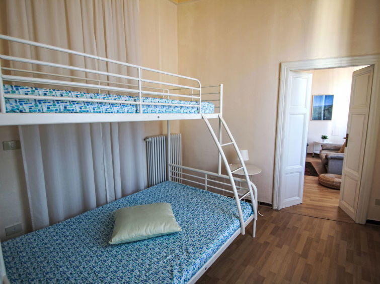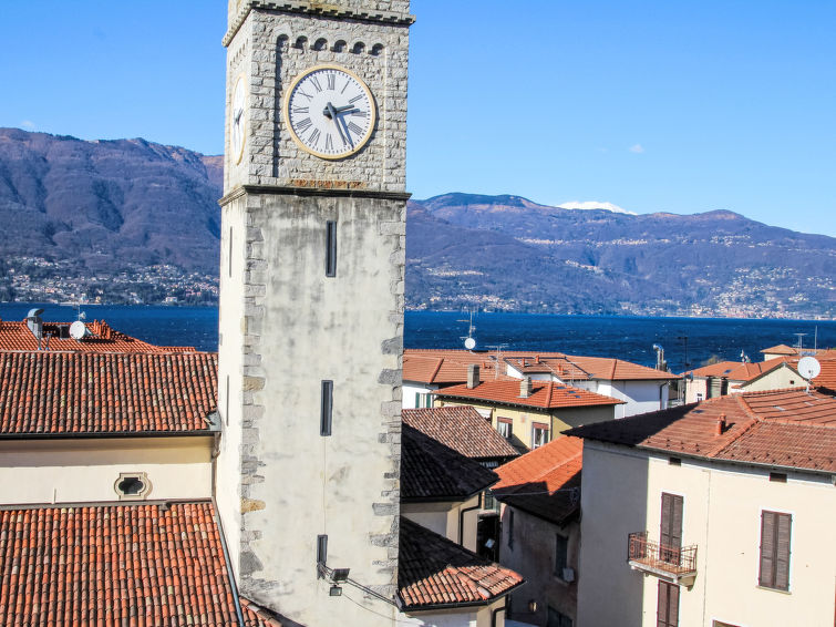 Old apartment house "Roma". In the centre of Porto Valtravaglia, 90 m from the lake. Public parking 300 m. Supermarket 350 m, restaurant 200 m, bar 20 m, bakery 10 m, café 200 m, bus stop 100 m, railway station "Porto Valtravaglia" 700 m, pebble beach 250 m. Nearby attractions: Laveno 9 km, Luino 9 km. Please note: Loading and unloading of baggage is possible at the holiday house.3-room apartment 90 m2 on 2nd floor, west facing position. Bright, practical furnishings: living/dining room with dining table and satellite TV. Walk-through room with 1 x 2 bunk beds. 1 large double bedroom with shower/bidet/WC. Kitchen (oven, Gas stove, 4 gas rings, toaster, freezer, electric coffee machine) with dining table. No heating option. Beautiful view of the lake and the resort. Facilities: washing machine, children's high chair, baby cot for up to 2 year olds. Please note: non-smokers only. Maximum 1 pet/ dog allowed. Fire extinguisher, no lift. IT012114C267S47K52