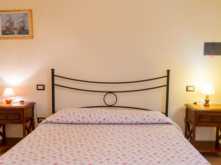 Country house "L'Orto e le Rose". 2 houses in the residence. 3 apartments in the residence. 3 km from the centre of Bolsena, 25 km from the centre of Orvieto, 100 km from the centre of Roma, 900 m from the lake, in the countryside. For shared use: property 2'000 m2 with lawn and trees, orchard, lawn for sunbathing, swimming pool (16 x 8 m, depth 150 cm, seasonal availability: 16.May. - 03.Oct.). Outdoor shower, barbecue, children's playground, roofed, parking on the premises. Shop 3 km, supermarket 4 km, bus stop 3.5 km, sandy beach "Lago di Bolsena" 900 m. Golf course (9 hole) 15 km. Please note: the owner lives on the same property. Additional accommodations can be booked."Rosa Tea", 4-room house 100 m2, on the ground floor. Bright, rustic furnishings: living/sleeping room with 1 sofabed, open-hearth fireplace, dining table and TV. 2 rooms, each room with 1 double bed. 1 room with 2 beds. Kitchen (oven, dishwasher, 4 gas rings, toaster, kettle, freezer, electric coffee machine) with dining table. Exit to the terrace. 2 showers/WC. Gas heating. Terrace roofed. Terrace furniture. Facilities: washing machine, safe, mosquito net, children's high chair, baby cot. Internet (WiFi, free). Please note: non-smoking house. When there are less than the maximum number of guests staying at the property, not all of the bedrooms will be available for use. IT056008B5DO7BA8FH