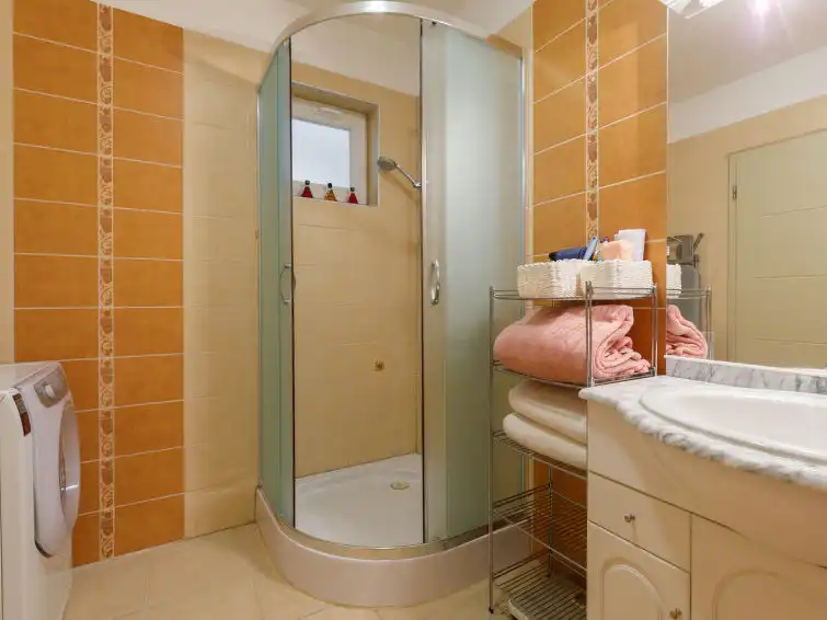 Balatonőszöd 8 km from Balatonlelle: Residence. In the resort, 20 m from the lake, from the beach, direct access to the beach. For shared use: outdoor shower, table tennis, barbecue, children's playground (slide, swing, sandbox), bathing jetty. In the house: central heating system. Grocery 3 km, supermarket 8 km, restaurant 2 km, bakery 3 km, café 2 km, bus stop 2 km, railway station 2 km, grass beach 20 m, thermal baths "Csiszta" 38 km. Surf school 6 km, sailing school 8 km, tennis 2 km, cycle lane 50 m, children's playground 50 m. Nearby attractions: Siófok Giant Weels 30 km, Kereki Dinosaur Park 17 km, Tihany 15 km, Bella Zoo Siófok 26 km."Rosalia", 2-room apartment on the upper floor. Spacious and bright, comfortable and modern furnishings: large living/dining room with 1 sofabed (160 cm, length 200 cm), cable TV. Exit to the balcony. 1 room with 1 french bed (160 cm, length 200 cm). Open kitchen (4 ceramic glass hob hotplates, toaster, kettle, microwave, freezer, electric coffee machine). Exit to the balcony. Shower/WC. Heating, floor heating (extra). Terrace furniture, deck chairs (2). Beautiful panoramic view of the lake. Facilities: washing machine, mosquito net, children's high chair, baby cot (extra). Internet (WiFi). Parking.