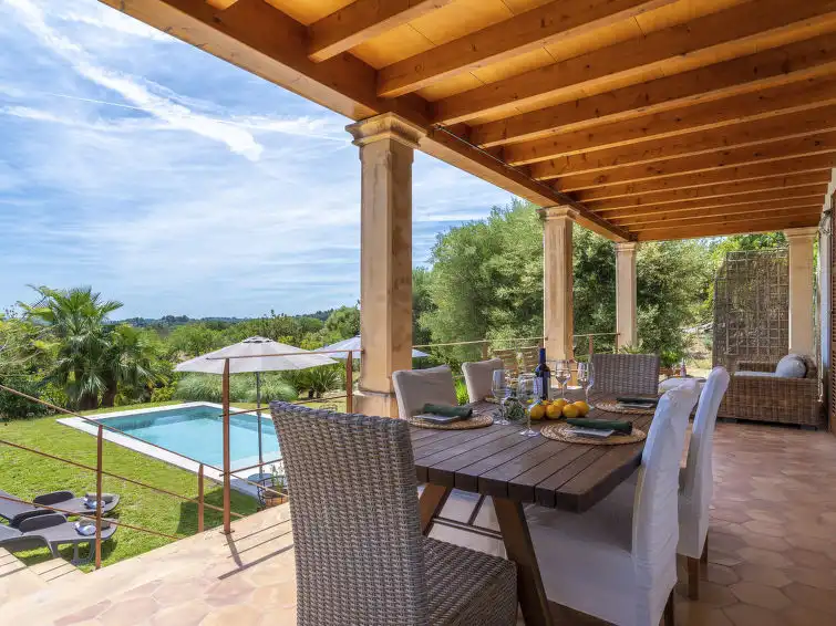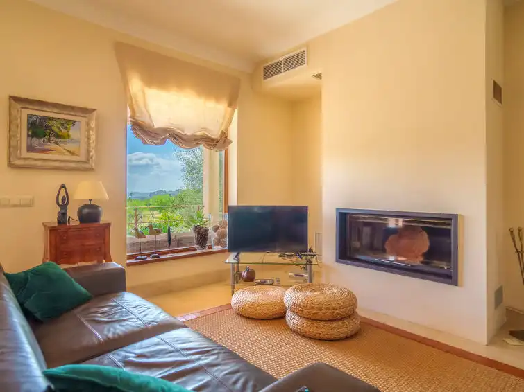 Large, very beautiful, comfortable villa "Sa Coma Caimari", 2 storeys. In the resort, 300 m from the centre, in a quiet, sunny position, 170 m from the edge of the forest, 27 km from the sea. Private: natural state property (fenced), beautiful garden with lawn and trees, swimming pool angular (6 x 4 m, depth 40 - 170 cm, seasonal availability: 01.Jan. - 31.Dec.). Outdoor shower, patio, arbour, pergola, garden furniture, barbecue, pool maintenance by the owner/gardener. In the house: billiard table, air conditioning. Parking at the house on the premises. Grocery 210 m, restaurant 280 m, bar, bakery 350 m, café 170 m, bicycle rental 2.3 km, pub garden 300 m, 4 minute walk to the centre, bus stop "Caimari 1 (58004)" 450 m, sandy beach "Port d'Alcúdia" 27 km. Sports harbour 28 km, golf course (18 hole) 23 km, tennis 2.2 km, sports centre 700 m, walking paths from the house 200 m, cycle lane 500 m. Nearby attractions: Pueblos de Selva,Moscari,Mancor,Campanet, Ciudad de Palma 42 km, Santuari de Lluc 11 km, Restaurantes: Ca Na Toneta, Sa Tafona, Playa y Faro de Formentor 35 km, Mallorca Fashion Outlet & Cinemas 28 km. Hiking paths: Serra de Tramuntana 500 m, Camí Vell de Caimari Lluc, Mancomunitat des Raiguer. Please note: car recommended. Object suitable for 4 adults. The owner does not accept any youth groups. Airfield 44 km from the property. Neighbourhood highly sensitive to noise. Quietness and good behaviour expected."Sa Coma Caimari", 5-room villa 250 m2 on 2 levels. Object suitable for 4 adults. Spacious and bright, very comfortable furnishings: large living room with open-hearth fireplace (only for decoration), digital TV, flat screen, air conditioning and forced-air heating. Exit to the patio. Kitchen-/living room (5 hot plates, oven, dishwasher, toaster, kettle, microwave, freezer, electric coffee machine) with dining table, open-hearth fireplace (only for decoration). Exit to the patio. Shower/WC. Upper floor: large lounge with digital TV, flat screen, air conditioning and forced-air heating. 1 large double bedroom with 1 french bed (150 cm, length 190 cm), shower/WC, double hand-basin, electric heating, air conditioning and forced-air heating. 1 double bedroom with panoramic window with 1 french bed (150 cm, length 190 cm), electric heating and fan. 1 double bedroom with 1 french bed (150 cm, length 190 cm), electric heating, air conditioning and forced-air heating. Bath/shower/WC. Large garden, lawn, porch. Terrace furniture, barbecue (portable), deck chairs, covered balcony. Very beautiful view of the countryside. Facilities: washing machine, safe, iron, children's high chair, baby cot for up to 2 year olds, hair dryer. Internet (WiFi, free). Parking (fenced). Please note: fire extinguisher. The pool mentioned in the description is for private use. ETV/2578 // Reg. Nr.: ESFCTU00000702200044449600000000000000000000ETV/25786