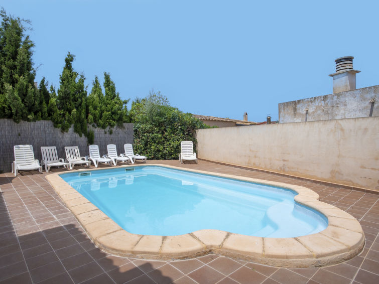 Sa Coma 2 km from Cala Millor: Large, cosy, comfortable single-family house "Sa Coma". 1 km from the centre of Sa Coma, 2 km from the centre of Cala Millor, 18 km from the centre of Manacor, in a central position in the residential district, 3 km from the edge of the forest, 2 km from the sea, 2 km from the beach, south-east facing position. Private: property 450 m2 (fenced), well-kept garden with lawn, swimming pool angular (6 x 3 m, seasonal availability: 01.Jan. - 31.Dec.). Outdoor shower, pool maintenance by the owner/gardener. In the house: air conditioning. Parking on the premises. Shop 3 km, grocery, supermarket 400 m, shopping centre 4 km, restaurant 400 m, bar 500 m, bakery 700 m, 10 minute walk to the centre, bus stop "Savines 1 (51002)" 1.4 km, railway station "Estación de Manacor" 18 km, sandy beach "Platja de Sa Coma" 2 km. Sports harbour 6 km, marina 6 km, golf course (18 hole) 9 km, surf school 6 km, sailing school 6 km, tennis 18 km, riding stable 3 km, walking paths from the house 10 km. Nearby attractions: Rafa Nadal Academy 16 km, Coves del Drac 8 km, Coves dels Hams 8 km, Es Trenc 50 km, Poblat Talaiòtic de Ses Païsses 15 km. Object suitable for 12 adults. The owner does not accept any youth groups. Please note: airfield 66 km from the property."Sa Coma", 8-room house 250 m2 on 2 levels, south-west facing position. Object suitable for 12 adults. Modern furnishings: living/dining room with dining table, kitchen corner, satellite TV and digital TV. Exit to the terrace. Living/dining room with dining table, satellite TV and digital TV. Exit to the terrace. 1 room with 1 french bed. 2 rooms, each room with 2 beds. Open kitchen (oven, dishwasher, 4 ceramic glass hob hotplates, toaster, kettle, microwave, freezer, electric coffee machine). Bath/WC, 2 showers/WC. Upper floor: 1 room with 1 french bed, air conditioning and forced-air heating. Exit to the terrace. 1 room with 2 beds, air conditioning and forced-air heating. Exit to the terrace. 1 room with 2 beds, air conditioning and forced-air heating. Bath/WC. Electric heating, air-conditioning. 2 terraces 12 m2. Terrace furniture, barbecue, deck chairs. Facilities: washing machine, iron, children's high chair, baby cot, hair dryer. Internet (WiFi, free). Please note: non-smoking house. No internal connecting door between the separated properties. ET/2484 // Reg. Nr.: ESFCTU00000702300008643300000000000000000000ETV/24844