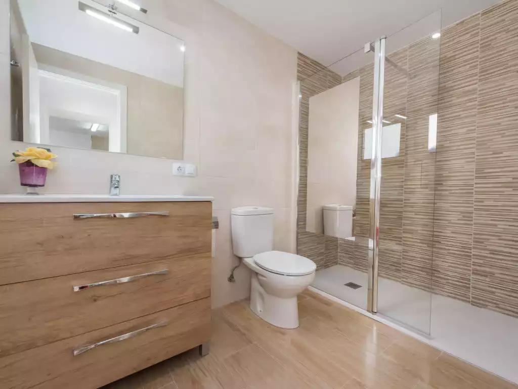 Campanet: Very beautiful, cosy single-family house "Sa Lluna", 2 storeys, renovated in 2017. In the resort 1 km from the centre of Campanet, in a quiet, sunny position, 1.6 km from the edge of the forest, 21 km from the sea, 21 km from the beach. Private: garden with lawn and wildlife garden, swimming pool angular (4 x 7 m, seasonal availability: 01.Apr. - 01.Dec.). Outdoor shower, patio, arbour, pergola, garden furniture, barbecue. In the house: internet access, WiFi, air conditioning, washing machine. Parking at the house. Grocery 200 m, supermarket, restaurant 900 m, bar, bakery 800 m, pub garden 900 m, 7 minute walk to the centre, bus stop 1.1 km, sandy beach 21 km, rocky beach 21 km. Sports harbour 22 km, marina 22 km, golf course (18 hole) 22 km. Nearby attractions: saclasta.com Wine Tours. Please note: suitable for families, suitable for seniors. Object suitable for 6 adults + 2 children groups of teenagers on request only. Airfield 50 km from the property. Neighbourhood highly sensitive to noise. Quietness and good behaviour expected."Sa Lluna", 4-room house 150 m2 on 2 levels. Object suitable for 6 adults + 2 children. Spacious, fully renovated in 2017, very comfortable and beautiful furnishings: large living/dining room with 1 double sofabed, TV, flat screen, wood-burning stove, air conditioning and forced-air heating. Kitchen-/living room (oven, dishwasher, 3 ceramic glass hob hotplates, microwave, freezer, electric coffee machine) with dining table. Exit to the patio, to the swimming pool. Bath/shower/WC. Upper floor: 2 large double bedrooms with panoramic window, each room with 1 french bed, air conditioning and forced-air heating. 1 double bedroom with panoramic window with 2 beds (90 cm), air conditioning and forced-air heating. Exit to the terrace. Bath/WC with corner bath. Large balcony, large patio, lawn, porch. Terrace furniture, barbecue, deck chairs. View of the mountains and the resort. Facilities: washing machine, iron, hair dryer. Internet (WiFi, free). Suitable for families. ETV8340 // Reg. Nr.: ESFCTU00000702200050052900000000000000000000ETV/83403