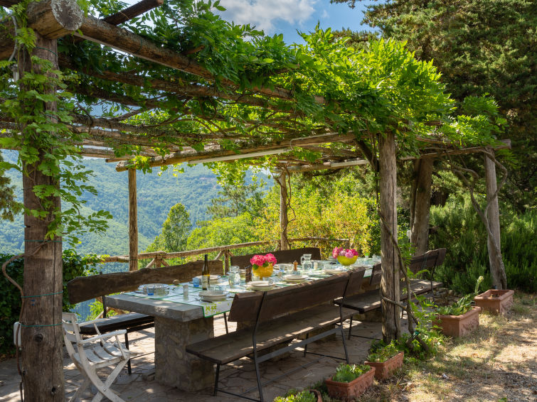 Historical villa "San Leolino", built in 1000, renovated, surrounded by trees. Above Londa 14 km from the centre of Rufina, 45 km from the centre of Firenze, in a secluded, elevated position, 100 m from the edge of the forest, in the countryside. For shared use: swimming pool (15 x 7 m, seasonal availability: 10.May. - 25.Sep.). Outdoor shower, pool maintenance by the owner/gardener. Private: natural state property 70'000 m2 with trees, meadow. Terrace, garden furniture, barbecue (slide, swing). In the house: billiard table. 1 km long bumpy, narrow motor access. Parking at the house on the premises. E-charging station. Shop 4 km, grocery 4 km, supermarket 4 km, restaurant 4 km, bar 4 km, bakery 4 km, railway station "Contea" 8 km, sandy beach "Marina di Pisa" 140 km. Golf course (18 hole) 45 km, walking paths from the house 100 m. Nearby attractions: Firenze 45 km, Arezzo 85 km, Siena 100 km. Please note: car recommended. Baby equipment (included). Groups of teenagers on request only.14-room house 500 m2 on 2 levels. Comfortable and tasteful furnishings: living room with open-hearth fireplace, satellite TV and DVD. Dining room with open-hearth fireplace. 1 room with 2 beds and shower/WC. 1 room with 1 double bed and shower/WC. 2 rooms, each room with 1 double bed. Kitchen (oven, dishwasher, 8 gas rings, toaster, microwave, freezer, electric coffee machine). Exit to the garden. Upper floor: living/sleeping room with 2 sofabeds. Living room with open-hearth fireplace, satellite TV and DVD. Exit to the garden. 4 rooms, each room with 1 double bed. 2 rooms, each room with 2 beds. Bath/WC, 3 showers/WC. Gas heating. Patio. Panoramic view. Facilities: washing machine, children's high chair, baby cot for up to 2 year olds. Internet (WiFi, free). Parking at the house. E-charging station. Please note: non-smoking house. Maximum 1 pet/ dog allowed. When there are less than the maximum number of guests staying at the property, not all of the bedrooms will be available for use. IT048025B4SM94K3OX