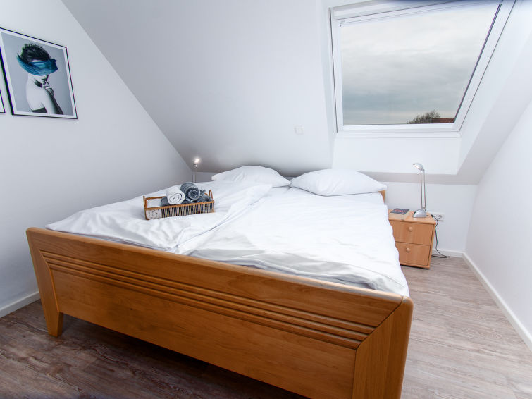 Apartment house. In the resort, in a quiet position, from the sea, 500 m from the beach. In the house: central heating system. Parking at the house. Supermarket 1.6 km, restaurant 100 m, bakery 300 m, bus stop 250 m, railway station "Norddeich" 2 km, sandy beach 500 m, outdoor swimming pool 14 km, indoor swimming pool 450 m. Golf course (18 hole) 8 km, surf school 900 m, tennis 2.5 km, minigolf 450 m."Sanddüne", 3-room apartment 58 m2 on 2 levels on 1st floor. Tasteful and cosy furnishings: living/dining room 18 m2 with satellite TV (flat screen). Exit to the balcony. 1 room 10 m2 with 1 double bed (2 x 90 cm, length 200 cm). Kitchenette (dishwasher, 4 ceramic glass hob hotplates, toaster, microwave, electric coffee machine). Shower/WC. Upper floor: (steep stair), 1 room 10 m2, with sloping ceilings with 2 beds (90 cm, length 200 cm). Small balcony. Balcony furniture. Facilities: children's high chair (extra). Internet (WiFi, free). Please note: non-smokers only. Smoke alarm. Access to the upper floor via a staircase. DE2981.471.1