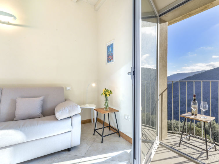 Ideal for hikers and mountain bikers, countless paths lead from the picturesque village of Marciana towards the sea and up Monte Capanne. Beautiful, cosy, historical house, 3 storeys, renovated in 2023. In the centre of Marciana, in a quiet, sunny position in the residential district, 6 km from the sea, 6 km from the beach, in a pedestrian area. In the house: storage room for bicycles, washing machine (extra), heating available only from 01.Nov. - 15.Apr.. 200 m footpath to the house. Public parking 250 m on the road. Shop 100 m, supermarket 6 km, restaurant, bar 200 m, bus stop 400 m, ferry "Portoferraio" 23 km, sandy beach "Sant´Andrea" 7 km. Sports harbour 7 km, walking paths from the house 50 m, cable car 500 m. Nearby attractions: Marciana Marina 7 km, Procchio 13 km, Patresi 7 km, Sant´Andrea 8 km. Hiking paths: Monte Capanne -, GTE Grande Traversata Elbana 2 km, Madonna del Monte 500 m. The apartment is located in a zone with limited traffic. Located within the walls of the village."Sant´Agabito", 1-room apartment 30 m2, on the upper ground floor. Fully renovated in 2023, modern and tasteful furnishings: living/dining room with panoramic window with 1 double sofabed (160 cm), dining table. Open kitchen (oven, 2 induction hot plates, toaster, kettle, microwave, electric coffee machine). Shower/bidet/WC. Electric heating, air-conditioning. Heating available only from 01.11. to 15.04. 2 small balconies. Box-room. Very beautiful view of the sea and the mountains. Facilities: iron, hair dryer. Internet (WiFi, free). Please note: non-smokers only. Maximum 1 pet/ dog allowed. Private entrance. In the living room two French windows with small balconies with splendid sea and mountain views. IT049010C2IPEPDYNV
