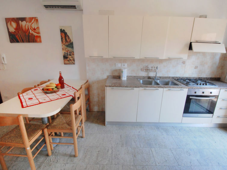 Residence "Simma". In the centre of Bibione, from the sea, 650 m from the beach. Parking at the house. Supermarket, restaurant, bar, café 500 m, bus stop 150 m, sandy beach 650 m, thermal baths "Terme di Bibione" 750 m. Please note: the photograph shows a typical example. Additional accommodations can be booked.3-room apartment 62 m2. Simple and comfortable furnishings: living/sleeping room with 1 double sofabed and TV. Exit to the balcony. 1 room with 1 double bed. 1 room with 1 x 2 bunk beds. Kitchenette). Shower/bidet/WC. Air-conditioning, forced-air heating. Large balcony. Maximum 1 pet/ dog allowed. IT027034B4I57S5LCX