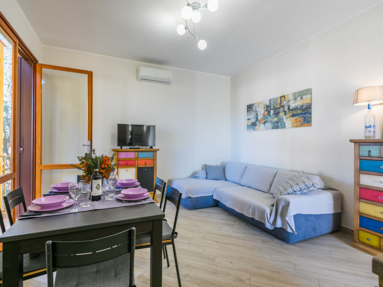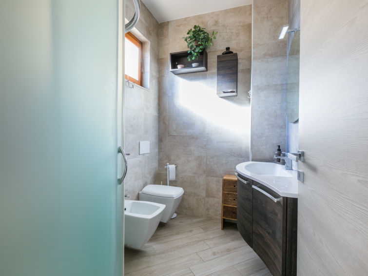 This comfortable apartment is in a top location just 50m from the fine sandy beach in San Vincenzo South and in just a few minutes you can reach the center of the port city. Apartment block, 2 storeys. 36 apartments in the residence. On the outskirts, 1 km from the centre of San Vincenzo, in the residential district, 50 m from the sea. For shared use: property (fenced), parking on the premises. Shop 1.5 km, supermarket 1 km, restaurant 500 m, bakery 550 m, railway station "San Vincenzo" 1.5 km, sandy beach 50 m, thermal baths "Calidario" 10 km. Marina 1.5 km. Nearby attractions: Bolgheri 20 km, Pisa 80 km, Lucca 100 km, Firenze 140 km. Well-known lakes can easily be reached: Dog beach 5 km."Sole e mare", 3-room apartment 70 m2 on 2nd floor. Fully renovated, beautiful and modern furnishings: 2nd upper floor: (exterior staircase) living/dining room. Exit to the balcony. 2 rooms, each room with 1 bed, 1 double bed and air conditioning. Open kitchen (oven, dishwasher, 4 induction hot plates, toaster, kettle, electric coffee machine) with dining table and satellite TV. Shower, shower/bidet/WC. Electric heating, air-conditioning. Balcony 12 m2, small balcony 8 m2. Balcony furniture. Facilities: washing machine, iron, hair dryer. Internet (WiFi, free). Parking (fenced). Please note: private entrance, fire extinguisher, no lift. IT049018C2QLNM2UF3