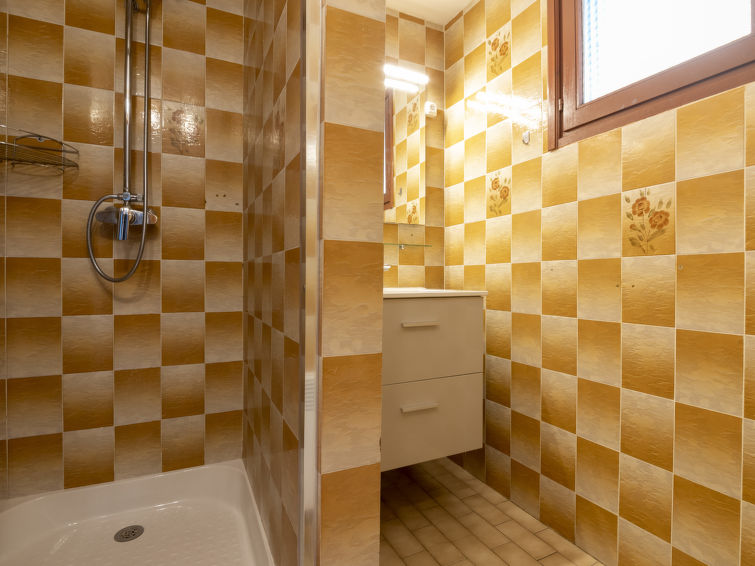 450 m from the centre of Les Saintes-Maries-de-la-Mer, 30 km from the centre of Aigues-Mortes, 40 km from the centre of Arles, 400 m from the sea. Public parking 300 m. Supermarket 50 m, bus stop "Les Massoucles" 350 m, sandy beach 400 m. Nearby attractions: Pèlerinage de Mai, Fete de la Saladelle, Arles, Aigues-Mortes, Courses Camarguaises, Balades à cheval, bateaux, calèche. Hiking paths: Animations et visite Parc Ornithologique. On the estate animal husbandry."Soleil Camarguais", 1-room apartment 40 m2 on 2 levels. Simple and practical furnishings: living/sleeping room with 1 bed (140 cm, length 190 cm), dining table and TV. Exit to the balcony. Gallery with 2 pull-out beds (2 pers. 2 x 80 cm, length 180 cm). Kitchenette (mini-oven, 3 ceramic glass hob hotplates, toaster, kettle, microwave, freezer, electric coffee machine). Shower/WC. Electric heating. Balcony. Balcony furniture. Facilities: iron. Internet (WiFi, free). Instead of an enclosed bedroom, some sleeping areas are located in an open-plan area (gallery, alcove, etc.). 13096000014AK