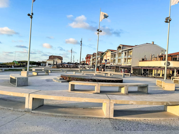 Residence "Soleil couchant". In the resort 900 m from the centre of de Mimizan Plage, 100 m from the edge of the forest, 900 m from the sea, 10 km from the lake, 900 m from the beach. For shared use: swimming pool fenced (4 x 5 m, depth 150 - 160 cm, seasonal availability: 01.Jun. - 30.Sep. pool opening hours: 10:00-21:00). Shop 850 m, grocery, bakery 800 m, pedestrian zone 800 m, bicycle rental 750 m, bus stop "Office du tourisme Mimizan" 700 m, sandy beach "la garluche" 900 m, bathing lake "Aureilhan" 10 km. Golf course (9 hole) 7 km, surf school 900 m, tennis 2.5 km. Nearby attractions: Arcachon 70 km, Biscarrosse 40 km, parcs aventure 7 km, Disc Golf 2 km. Well-known lakes can easily be reached: Aureilhan Mimizan 8 km. All houses/apartments are individually designed/furnished."Soleil Couchant B03", 3-room maisonette 54 m2, on the ground floor. Comfortable and modern furnishings: living room with TV (flat screen). Kitchen-/living room (oven, dishwasher, 1 ceramic glass hob hotplate, 2 gas rings, toaster, kettle, microwave, electric coffee machine) with dining table, air conditioning, boiler and electric shutters. Exit to the terrace. Shower/WC. Air-conditioning. Upper floor: 1 room with 1 french bed (1 x 140 cm, length 190 cm). 1 room with 1 x 1 bunk beds (90 cm, length 190 cm), 1 french bed (1 x 140 cm, length 190 cm). Sep. WC. Terrace 10 m2, south facing position and west facing position. Terrace furniture. Facilities: washing machine, iron. Internet (WiFi, extra). Parking space n 26. Please note: non-smokers only. 1 small pet/ dog allowed. Smoke alarm. Offer by a private individual according to Art. 155, IV of CGI.
