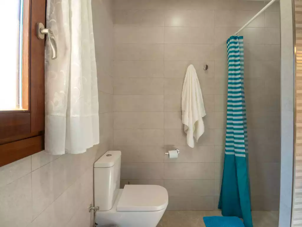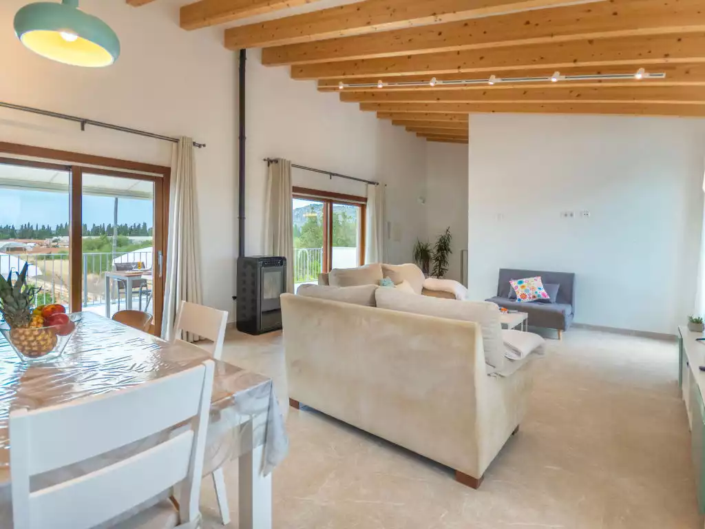 Inca 15 km from Port Alcúdia: Modern, comfortable farm estate "Son Vivot", 2 storeys. Outside the resort, 8 km from the centre of Inca, in a quiet, sunny position, 2 km from the edge of the forest, 15 km from the sea. Private: natural state property (fenced), garden with wildlife garden and trees, swimming pool angular, fenced (10 x 4 m, depth 180 cm, seasonal availability: 01.Jan. - 31.Dec.). Outdoor shower, patio, arbour, pergola, garden furniture, barbecue. In the house: internet access, WiFi, storage room for bicycles, washing machine. 50 m long bumpy motor access to the house. Parking at the house on the premises. Shop 6 km, supermarket 6.2 km, restaurant 6 km, bar 6.1 km, bicycle rental 6 km, bus stop 6.5 km, railway station 6.5 km, sandy beach "Playas de Muro" 15 km. Sports harbour 16.8 km, marina 16.8 km, golf course (18 hole) 20 km. Please note: car recommended. Suitable for families, suitable for seniors. Object suitable for 4 adults. Airfield 55 km from the property."Son Vivot", 3-room house 250 m2 on 2 levels. Object suitable for 4 adults. Spacious and bright, fully renovated, very practical and cosy furnishings: open large living/dining room with sliding door, panoramic window with open-hearth fireplace, dining table, satellite TV, digital TV and flat screen. Exit to the terrace, to the patio. Open kitchen (oven, dishwasher, 3 ceramic glass hob hotplates, microwave, freezer, electric coffee machine). Exit to the terrace, to the swimming pool. Shower/WC. On the lower ground floor: 1 large double bedroom with panoramic window with 1 french bed (150 cm, length 200 cm), shower/WC. Exit to the patio. 1 large double bedroom with panoramic window with 2 beds (90 cm, length 190 cm), shower/WC. Exit to the patio. Large terrace, large patio, porch. Terrace furniture, balcony furniture, barbecue, deck chairs (4), covered balcony. Very beautiful panoramic view of the mountains, the countryside and the town. Facilities: washing machine, iron, children's high chair, baby cot, hair dryer. Internet (WiFi, free). Parking (fenced) at the house. Suitable for families. ETV/12237 // Reg. Nr.: ESFCTU0000070110009868390000000000000000000ETV/122379
