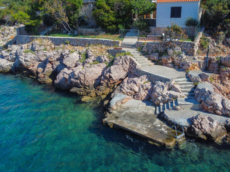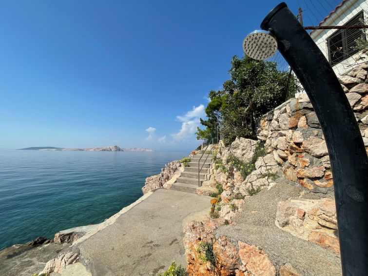 3-family house "Starigrad". 300 m from the centre, 20 km from the centre of Sveti Juraj, in a quiet, sunny, elevated position, 30 m from the sea, 30 m from the beach, in a cul-de-sac. For shared use: property 720 m2 (fenced), plants. In the house: internet access. Parking at the house on the premises. Shop 20 km, restaurant 13 km, bus stop 3.3 km, rocky beach, concrete beach 30 m. The owner does not accept any youth groups.2-room apartment 50 m2 on 1st floor, south facing position. 1 room with 1 french bed (160 cm, length 200 cm), air conditioning. 1 room with 2 beds (90 cm, length 200 cm). Dining room with satellite TV. Exit to the terrace. Open kitchen (oven, 4 ceramic glass hob hotplates, freezer, electric coffee machine). Shower/WC. No heating option. Terrace 10 m2, roofed. Terrace furniture. Marvellous view of the sea. Facilities: Internet (WiFi, free). Maximum 1 pet/ dog allowed.