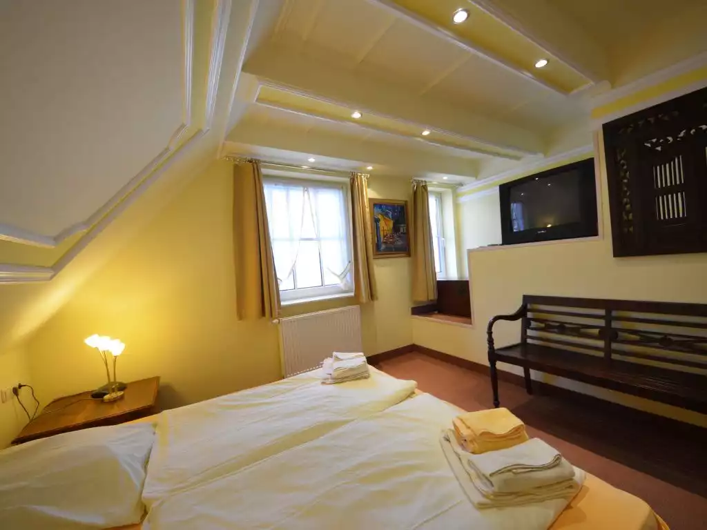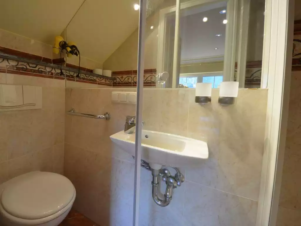 Terraced house. On the outskirts, 500 m from the sea, 2 km from the beach. For shared use: patio, fireplace. In the house: central heating system. Parking at the house. Grocery 800 m, restaurant, bus stop 500 m, railway station 20 km, sandy beach 2 km, outdoor swimming pool 13 km, indoor swimming pool 13 km, swimming bay 2 km. Golf course (18 hole) 30 km, riding stable 5 km. All seven reeded terraced houses have a high-quality and perfectly matching interior. Each house has a 109 cm (minimum) TV in the living/dining room and a second Sat-TV (72 cm) in one of the bedrooms. Cycles for hire. charcoal barbecue not allowed at the house for fire safety reasons."Strandhafer", 4-room terraced house 78 m2 on 3 levels, on the ground floor. Living/dining room with satellite TV, video, CD-player and hi-fi system. Open kitchen (oven, dishwasher, microwave, electric coffee machine). Shower/WC. Upper floor: 1 double bedroom. Shower/WC. Top floor: 1 room with sloping ceilings with 1 bed. 1 double bedroom with sloping ceilings. Terrace, garden. Terrace furniture, electric barbecue (portable). Facilities: washing machine, dryer, children's high chair. Internet (WiFi, free). Please note: non-smoking house. Maximum 1 pet/ dog allowed. There is 1 free parking space. On request pre ordering of another parking space at a cost of 4.00 euro per day.