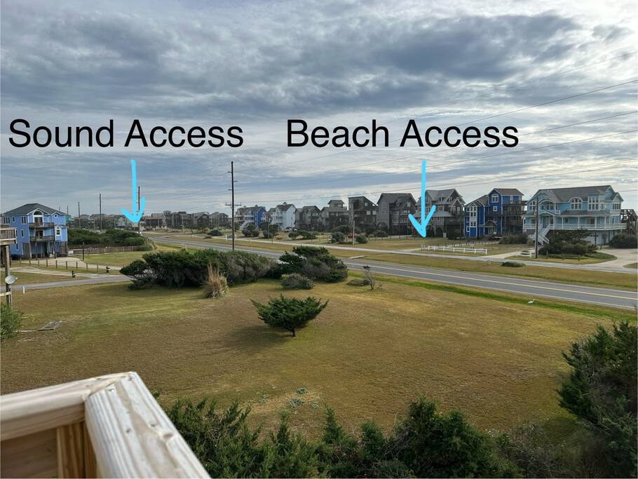 One row off the sound AND one row off the ocean. Access both through our community access points, both a quick walk from the house (about 100 yards walk to sound access and 200 yards walk to beach access).